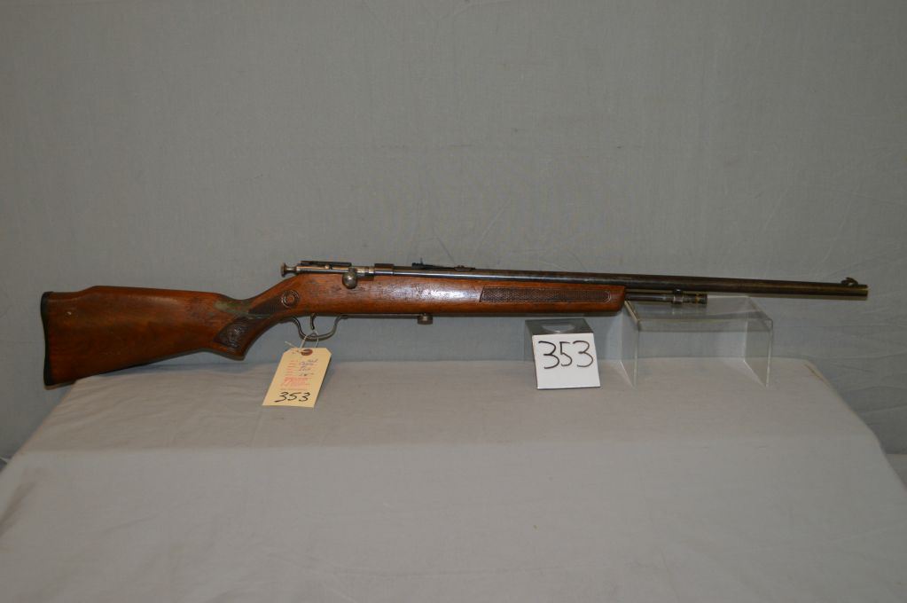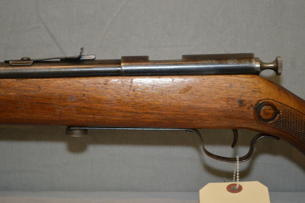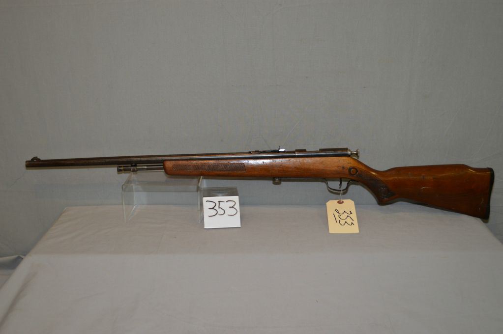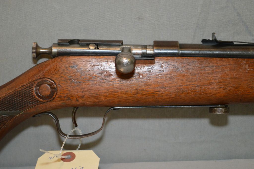Cooey Model 60 .22 LR cal Tube Fed Bolt Action Rifle w/ 24" bbl [ fading blue finish, pressed checkered Running Rabbit stock, w/ cracks & repaired w/green glue, (168) ] Ser # Nil