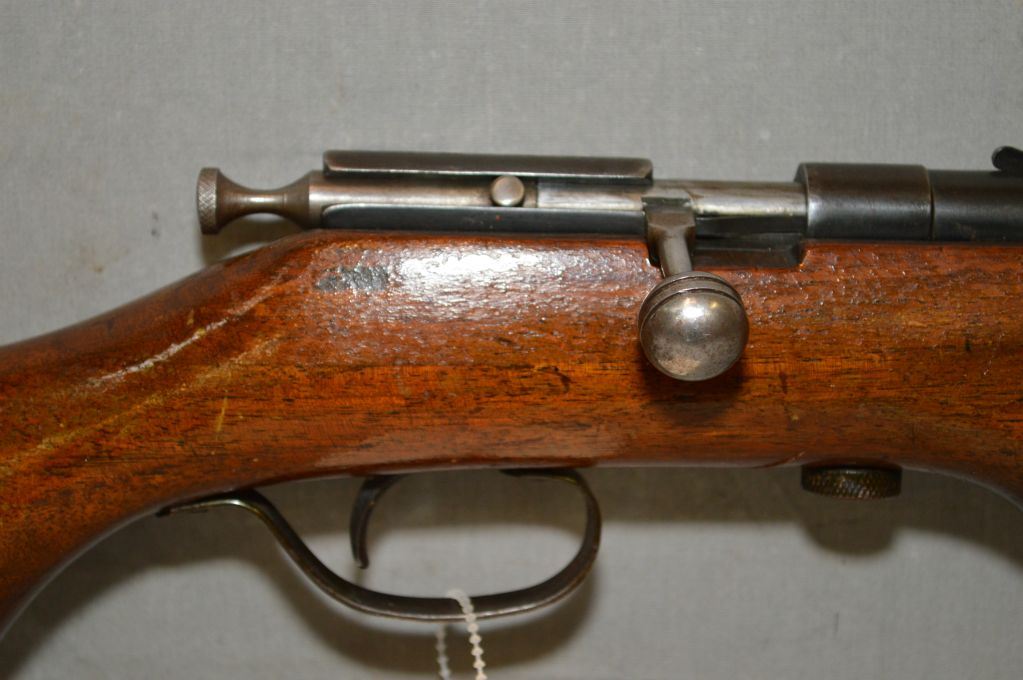 Cooey Model 75 .22 LR cal Single Shot Rifle w/ 27" bbl [ blued finish to fade, barrel sights, varnished pistol grip stock w/sling swivels & metal butt plate, varnish starting to flake, few marks , ( 154 ) ] Ser # Nil