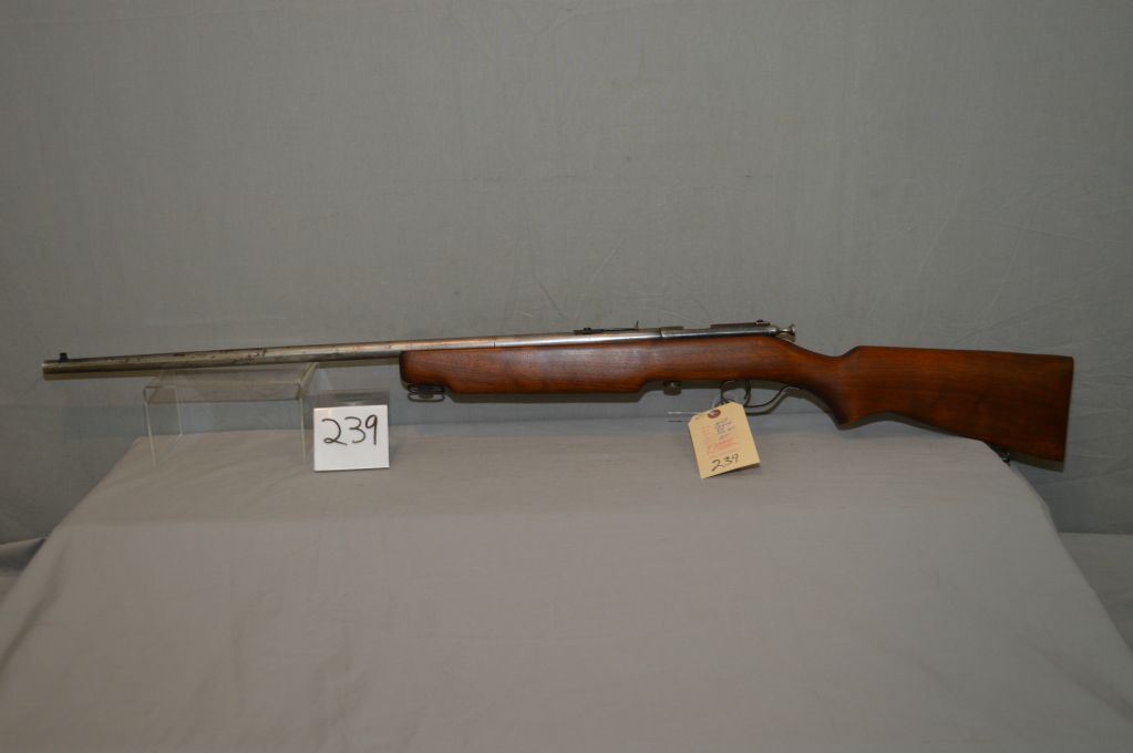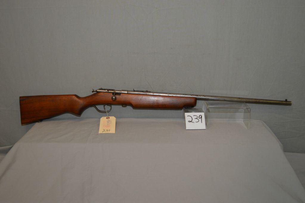 Cooey Model 82 .22 Rimfire cal Single Shot Bolt Action Rifle w/ 27" bbl [ blue finish fading to grey, new back sight missing the lift, good walnut stock w/sling swivels, metal butt plate, (27) ] Ser # Nil