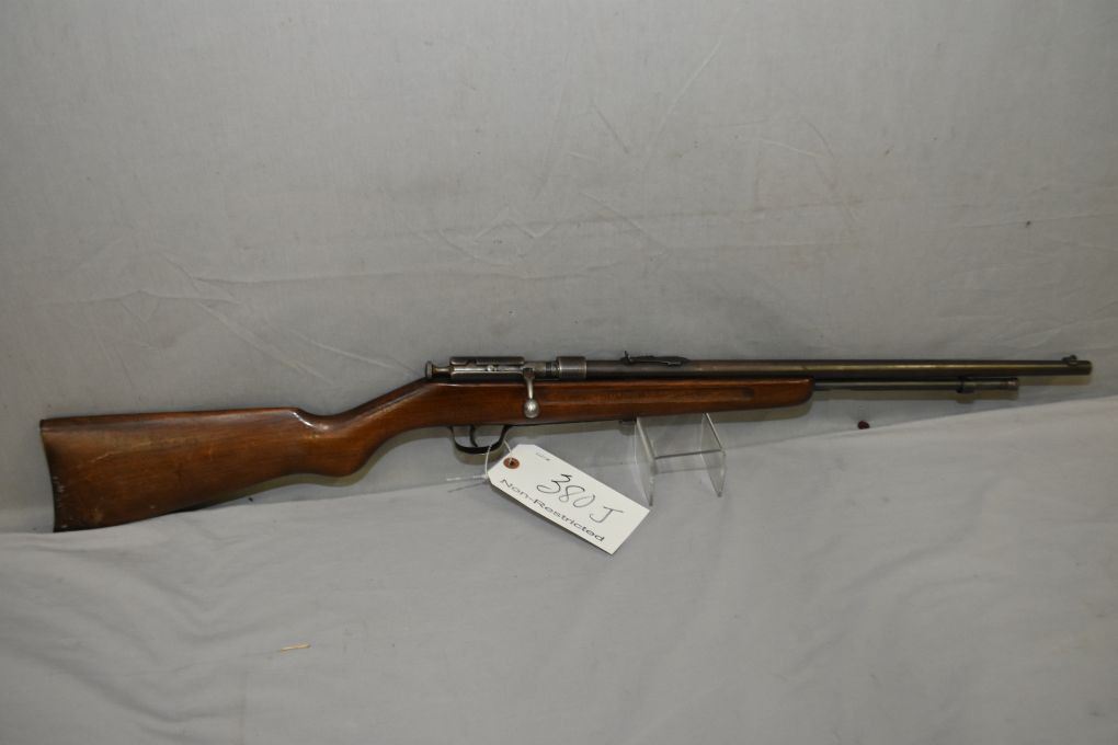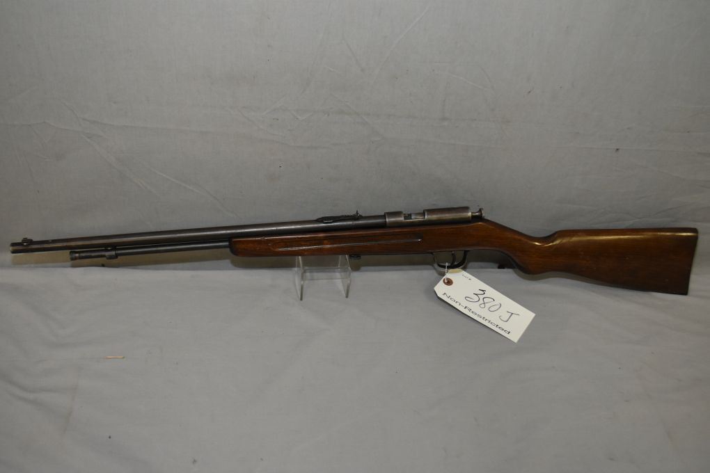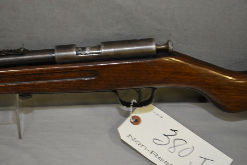 Cooey Model Repeater .22 Cal Tube Fed Bolt Action Rifle w/ 20" bbl [ fading blue finish turning brown, barrel sights, varnished semi pistol grip stock w/ fluted forend, has some light carving by right side of trigger ( numbers 2- 10 - 37 & posssibly initials ? ) Ser # Nil