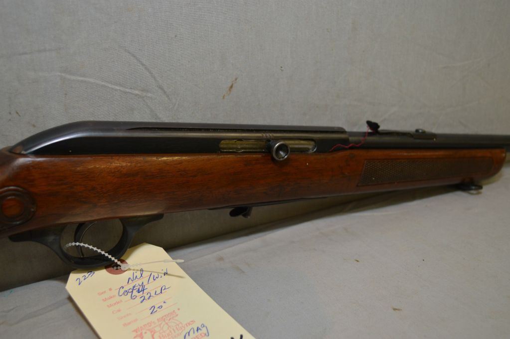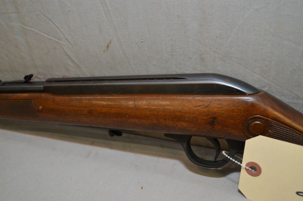 Cooey by Winchester Model 64 .22 LR Cal Mag Fed Semi Auto Rifle w/ 20" bbl [ blued finish, barrel sights missing the lift, Running Rabbit pressed checkered grip stock & forend, w/ sling swivels, missing the mag ] Ser # Nil