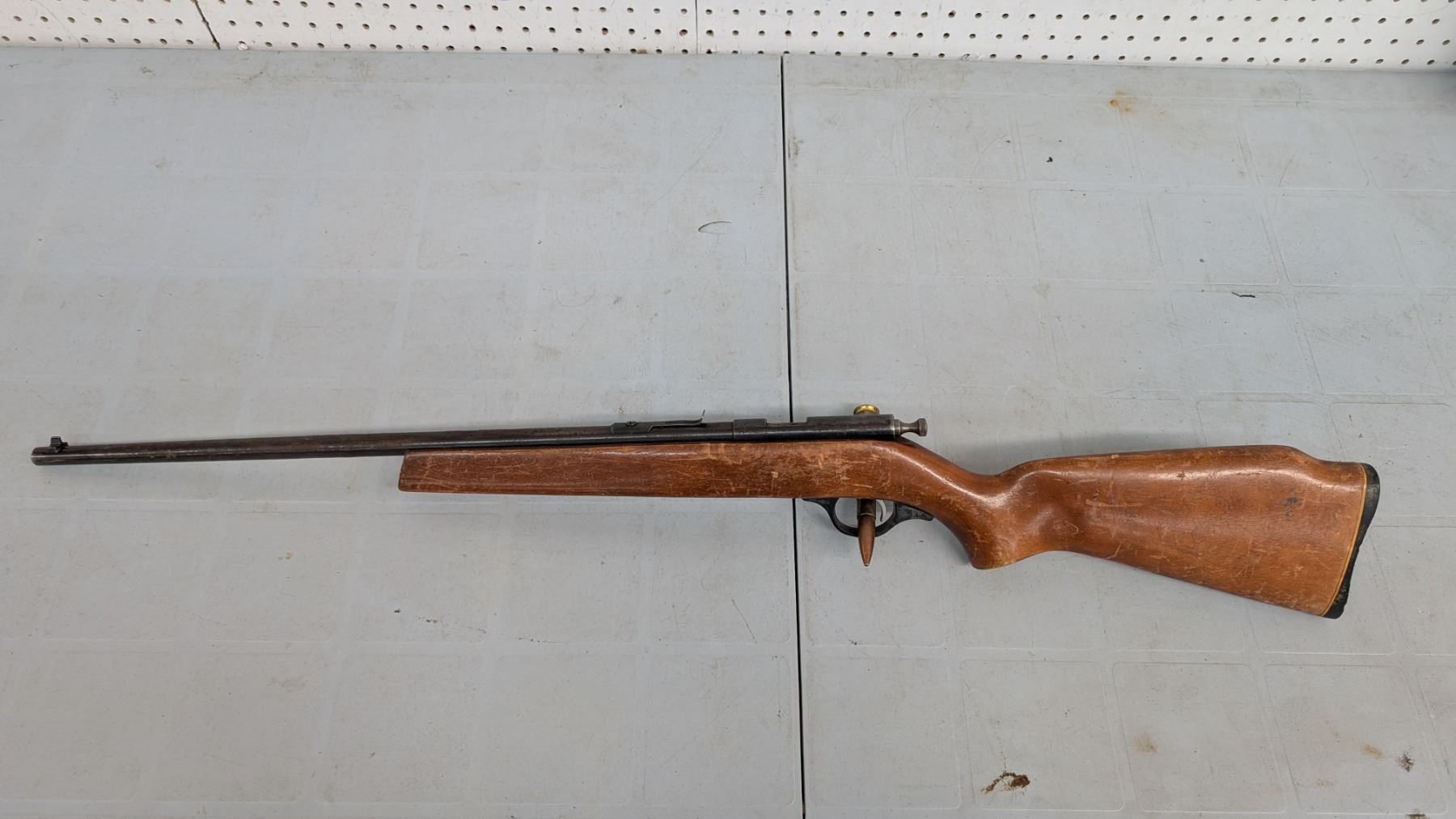 bolt action single shot. retains approx 30% of its original finish. action functions well. bore is shiny. stock is in good to very good condition. Missing rear sight elevator.