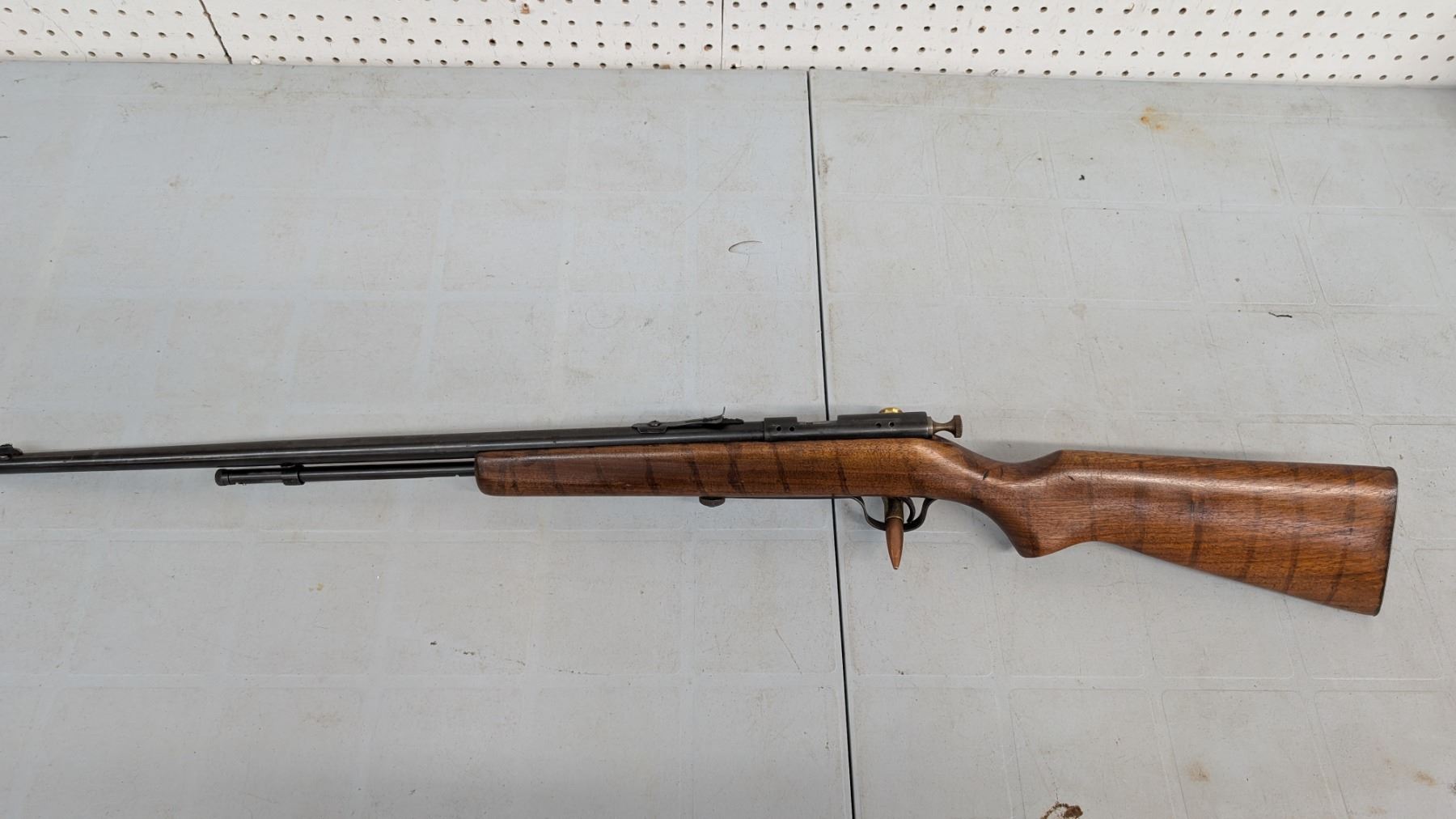 bolt action. retains approx 90% of its blue finish. action functions well. bore is shiny with lots of crisp rifling. stock is in good to very good condition.