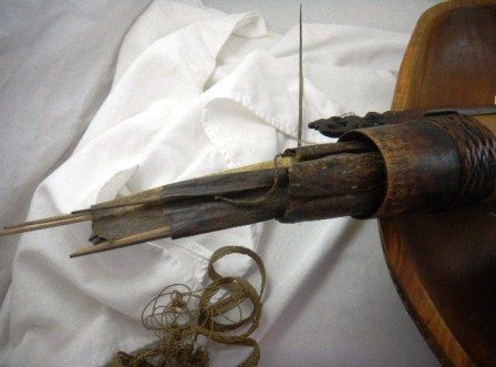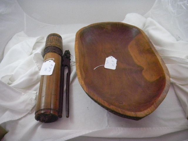 Cook Item Bowl and Islands quiver. The quiver with darts and necklace. The Bowl is 18 by 12 inches. The quiver is 14 by three inches. Shipping $20.00