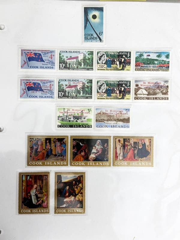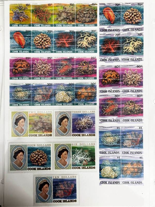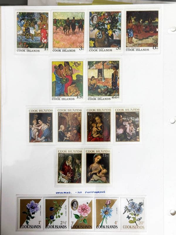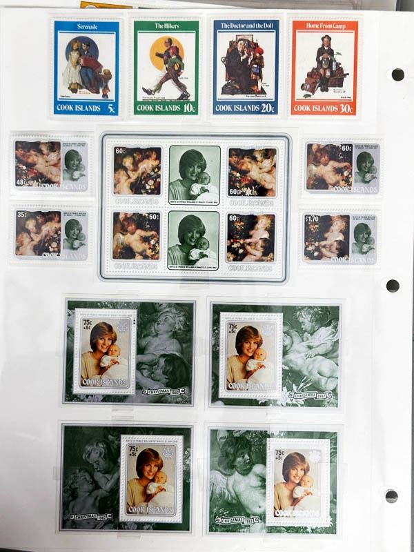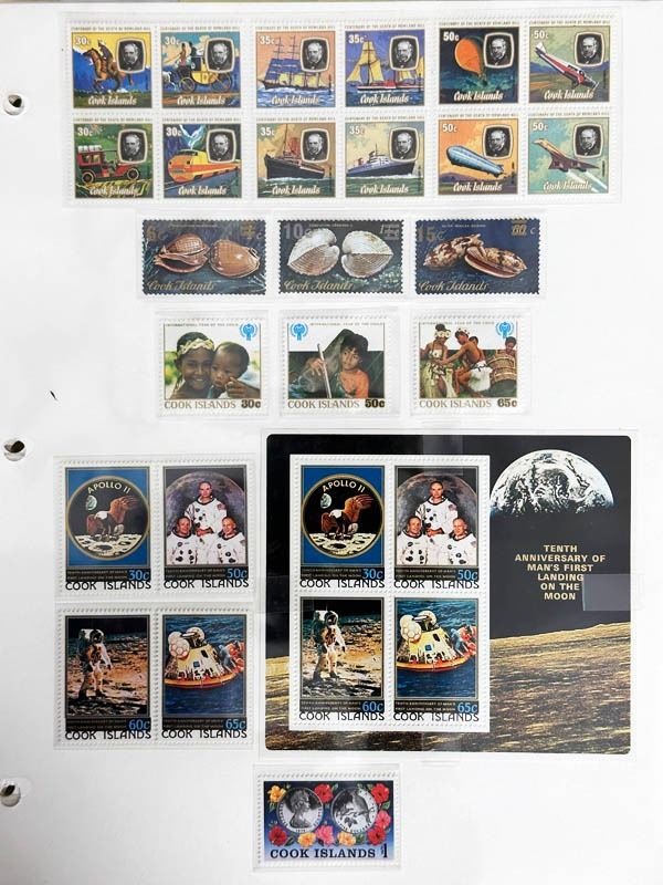 Cook Islands, 1966-89, a mostly mint, very modern collection. Rich in complete sets, topicals and souvenir sheets, with some airmail, quite extensive and all neatly mounted on blank pages. The clear winners in this one are space exploration, coral reefs, and Princess Diana. Excellent condition throughout, F-VF. Shipping weight 3.5 lbs / 1.6 kilos