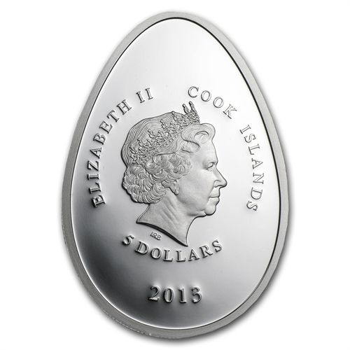Cook Islands 2013 Silver Proof Imperial Egg in Cloisonn **|**|** Year: 2013 ; Mint Mark: Proof ; Denomination: $5 ; MSRP: $100