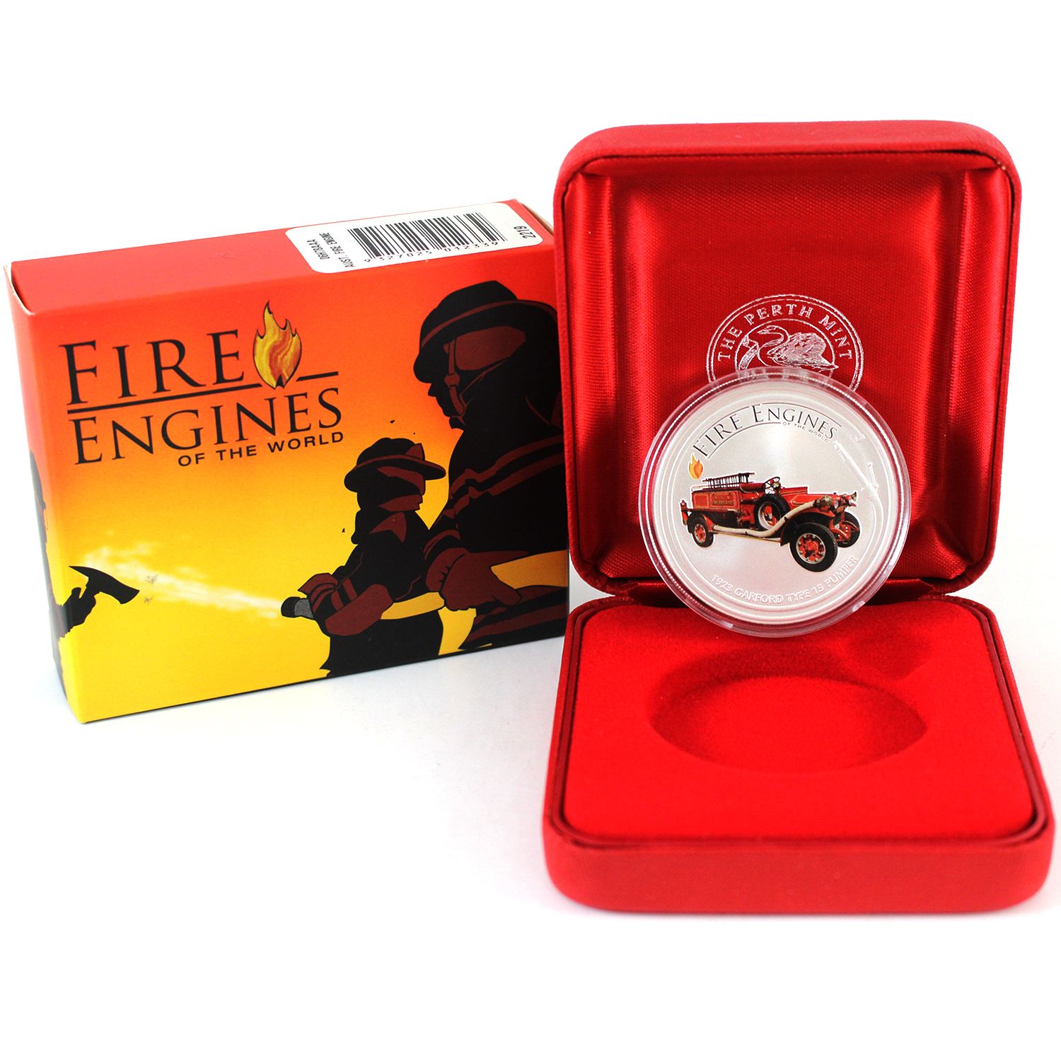 Coin is 1oz .999 fine silver and features the 1923 Garford Type 15 Pumper. (Tax Exempt)