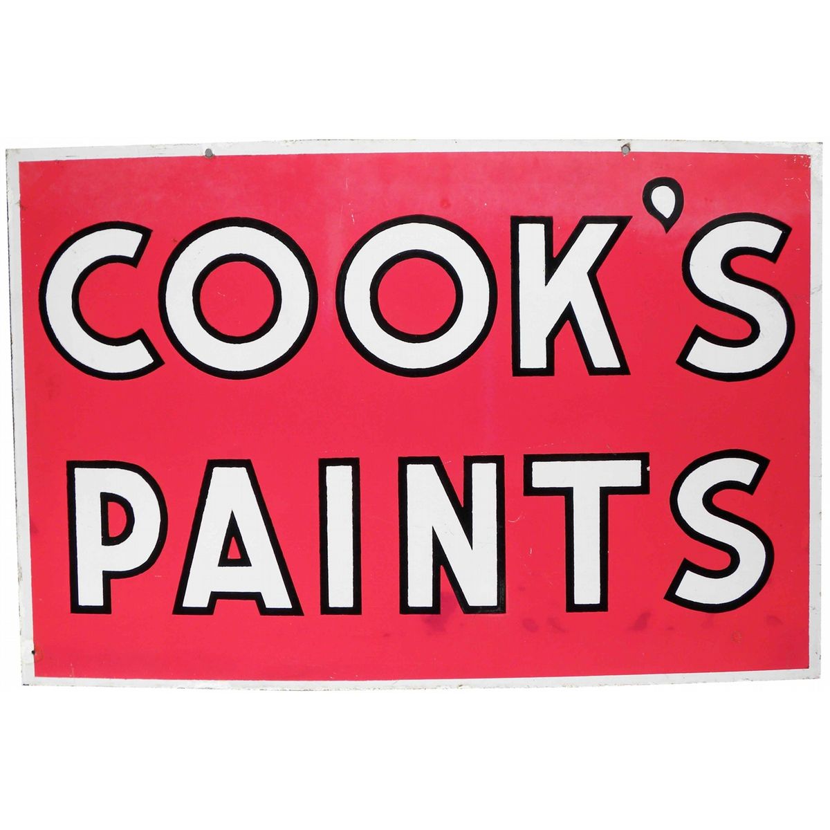Cook's Paints 2 Sided Porcelain Sign. Some minor discoloration otherwise very good condition. 36 X 24 inches.