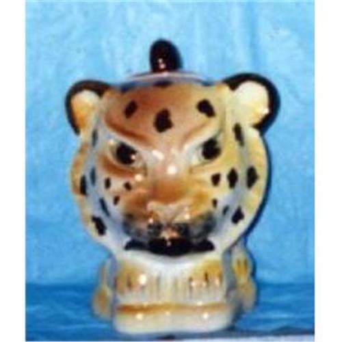 A nice looking leopard head jar with all his spots. Makes a nice display for a jungle theme or for all you animal lovers out there. No cracks, hairlines, or chips jar is mint never used condition.