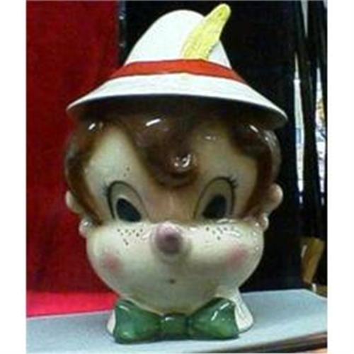 Everyone's favorite character is Pinocchio. A disney character jar by Metlox of California. This is an adorable head jar especially good for those who collect head jars.