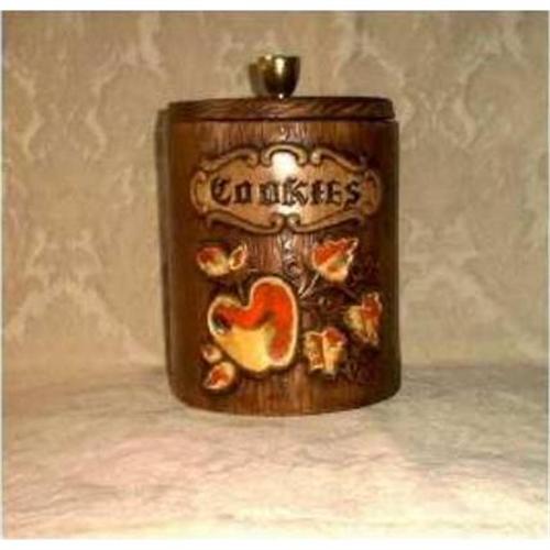Treasure Craft Cookie Jar has an apple design on the front and the word, "Cookies". The cookie jar is in very good condition with no chips or cracks. Marked Treasure Craft, Hand Done, Compton Calif. Made in USA. This Treasure Craft cookie jar measures 10" high and 6.5" wide.