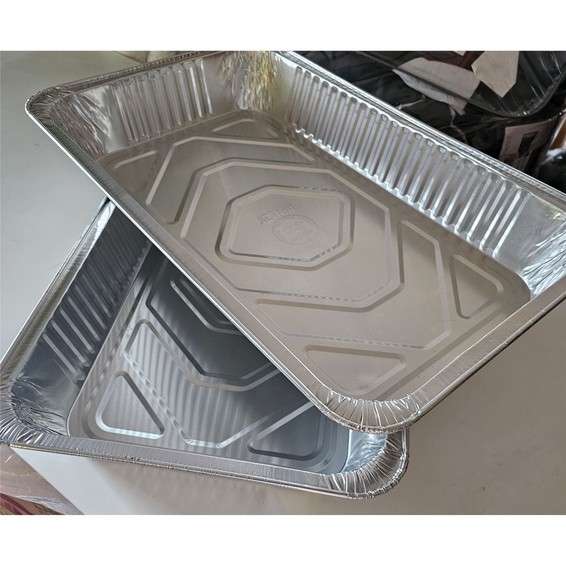 Pack of 2 full-size deep foil pans, ideal for baking, roasting, and serving, new.
