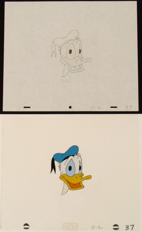 Donald Duck is the coolest duck in history * * * * * Original Animation Cel & DrawingMedium: Hand painted acetate celDetails: Animation notations and peg holes * * Original "rough" animation drawing, in non-photo blue and black pencil * * Size of cel: 10 1/2 x 12 1/2 inchesSize of drawing: 10 1/2 x 12 1/2 inches * * Condition: Very good * This is an original hand-painted cel set-up used in the production of the "Walt Disney Shows." Each one-of-a-kind set-up represents a slight change in position of the characters. When individually photographed and projected in rapid succession, the images appear * to move. To created production cels, the original animator's drawing is transferred onto an acetate cel (by hand-inking and/or photo copying). The cel is then hand-painted on the reverse side. * * * * * The cel and drawing received may be ever so slightly different than the one shown in the auction photo. * * Traditional animation is a multi-step process which includes various types of art techniques. Drawings are a key part of the process, in which the animator creates the design and movement of the characters. Drawings are then transferred onto acetate cels * (by hand-inking and/or photo copying) to create a production cel, which is then hand painted on the back side, using paint colors chosen and approved by the creator of the series.