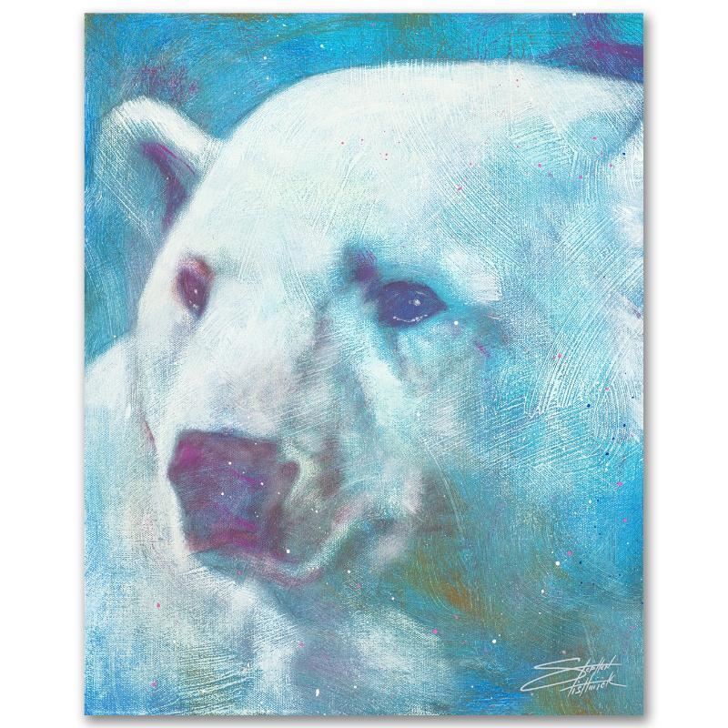 With bright colors and expressive lines, Stephen Fishwick puts a unique spin on pop culture portraits. "Cool Intentions" is a limited edition giclee on stretched canvas, numbered and bears the artist's authorized signature. This piece comes gallery wrapped! Includes Certificate of Authenticity! Measures approx. 16" x 20" (image).