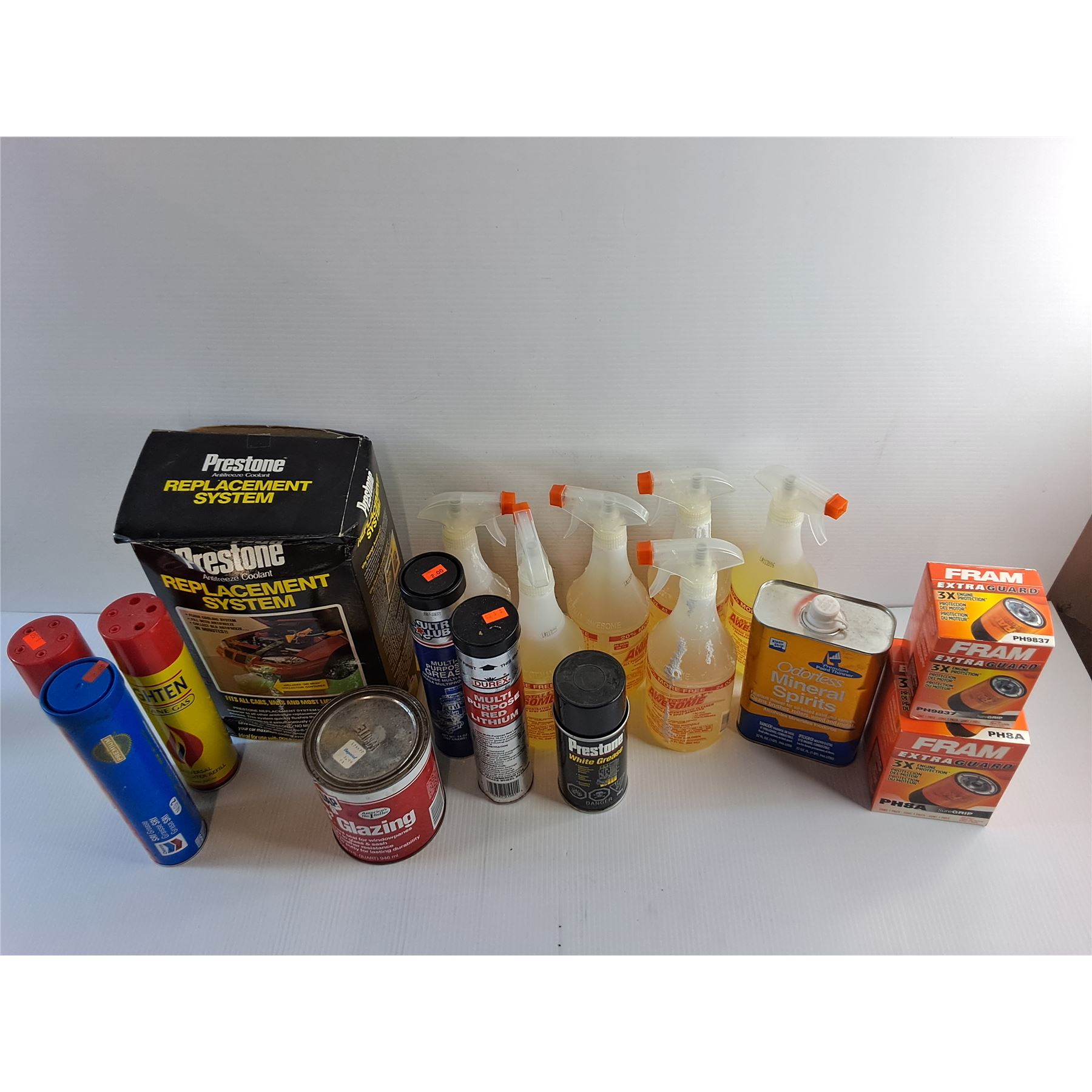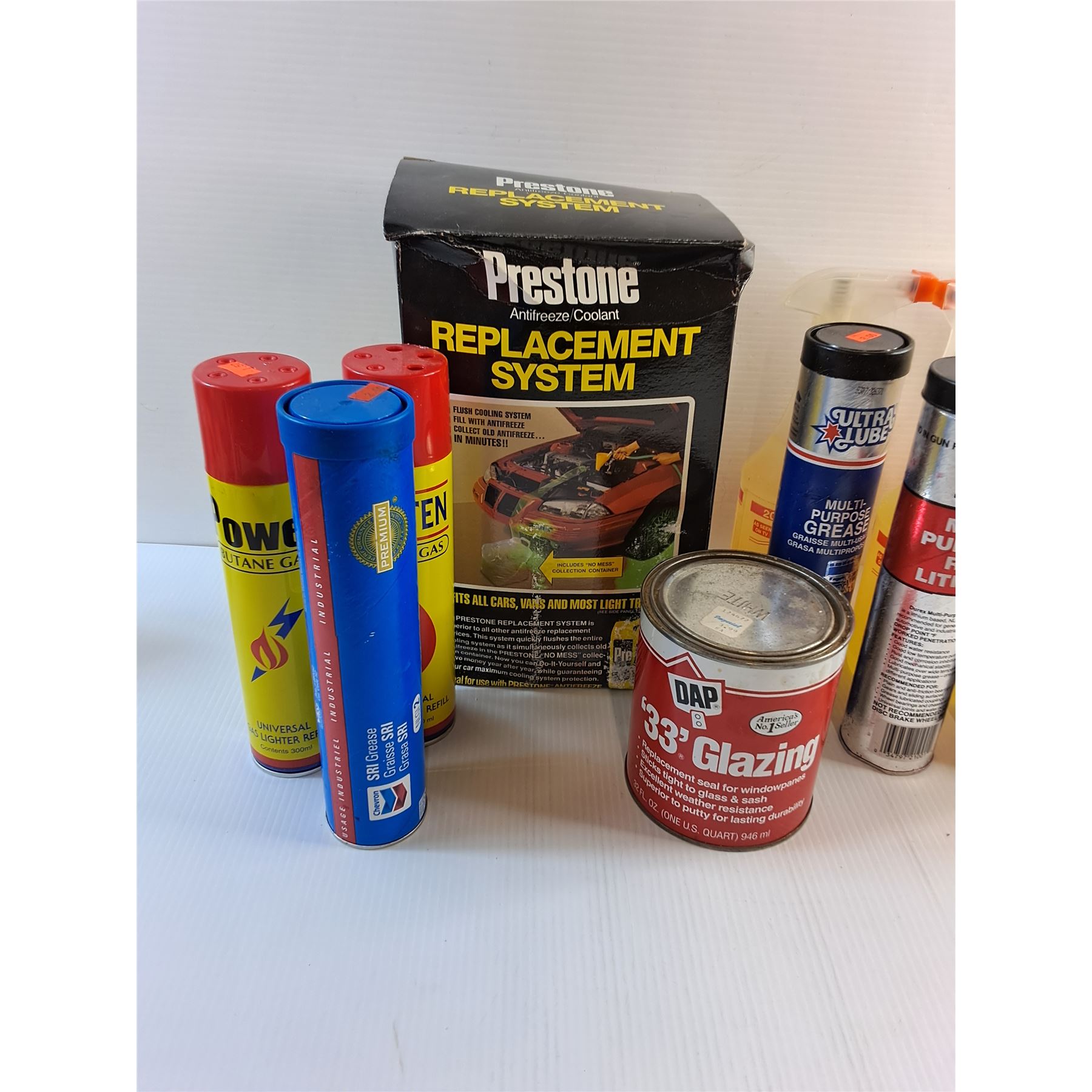Coolant Replacement System, Butane Gas, All Purpose Cleaner, Oil Filters, Grease, 33Glazing and Misc