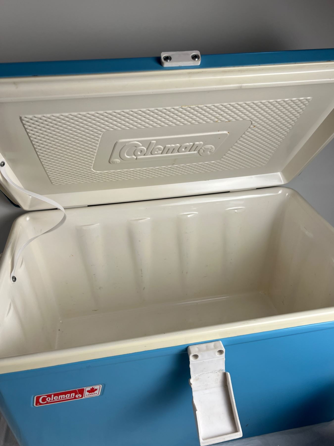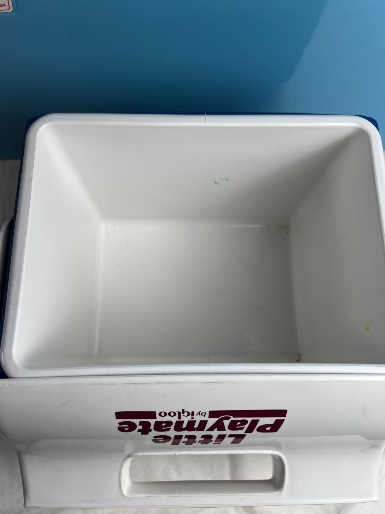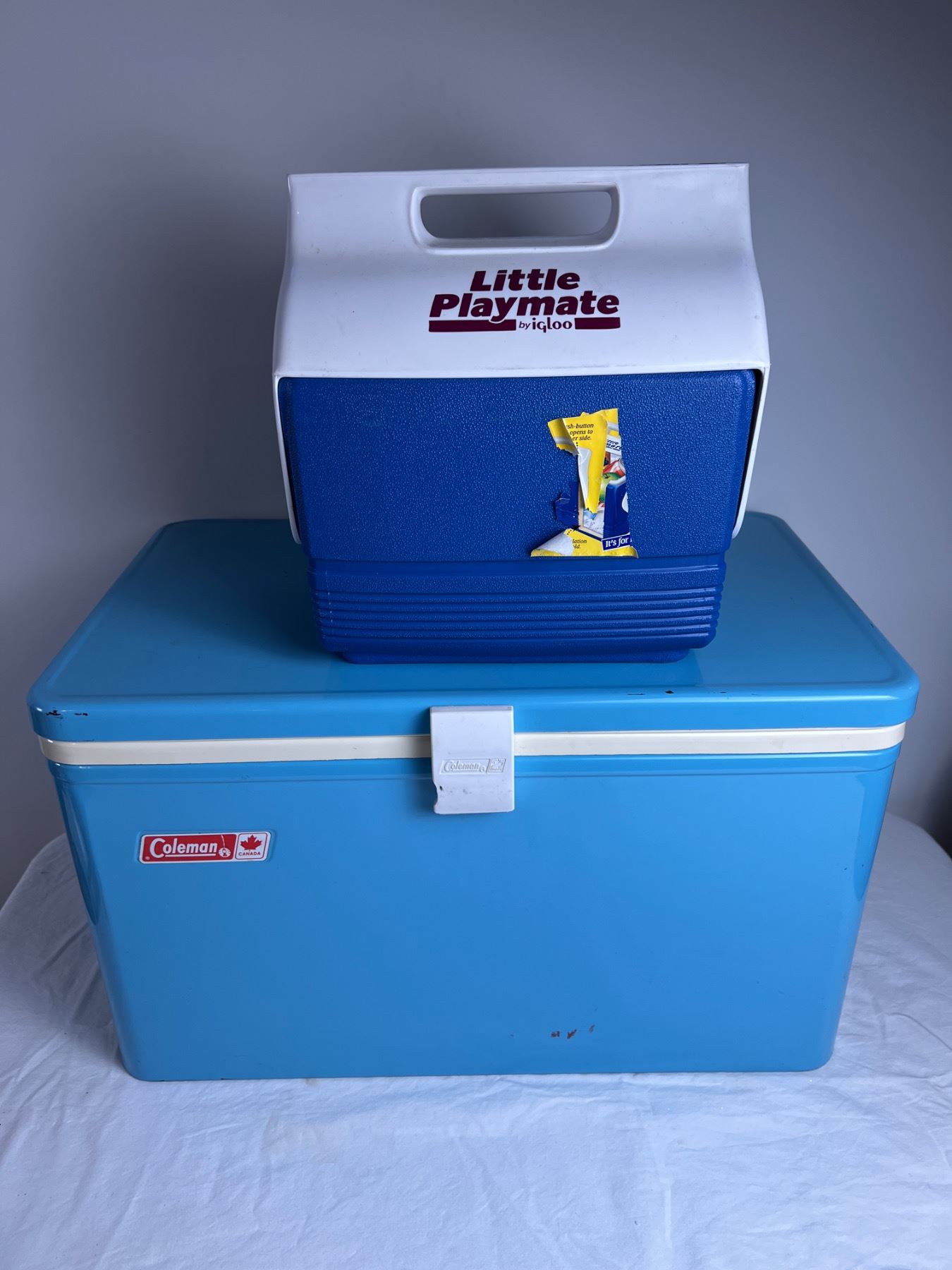 Includes a Little Playmate by Igloo, Coleman Canada cooler (clasp is cracked) 22"L x 14"W x 13"H