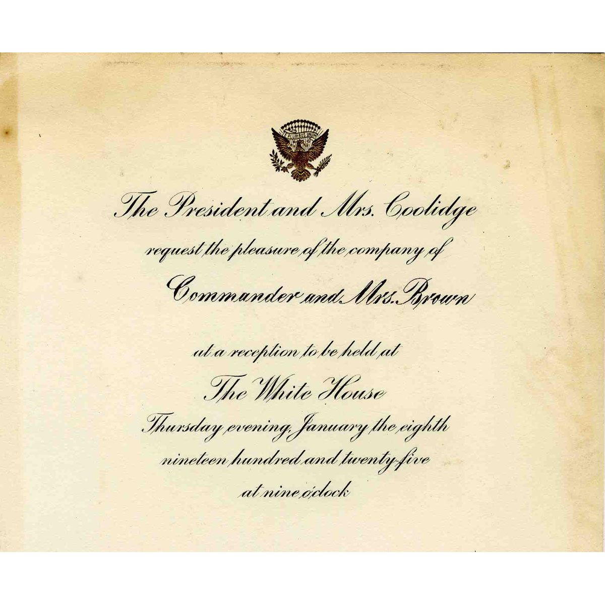 White House Invitation From President Coolidge -- 8 January 1925 -- 5.5'' x 4.5'' -- Gilt Embossed Presidential Eagle -- Very Good