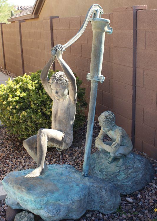 Coolin it by Jerry Joslin is a life size fountain sculpture with submerisble pump, and it is a sold-out edition. The size is 66 high x 62" wide x 31" deep."