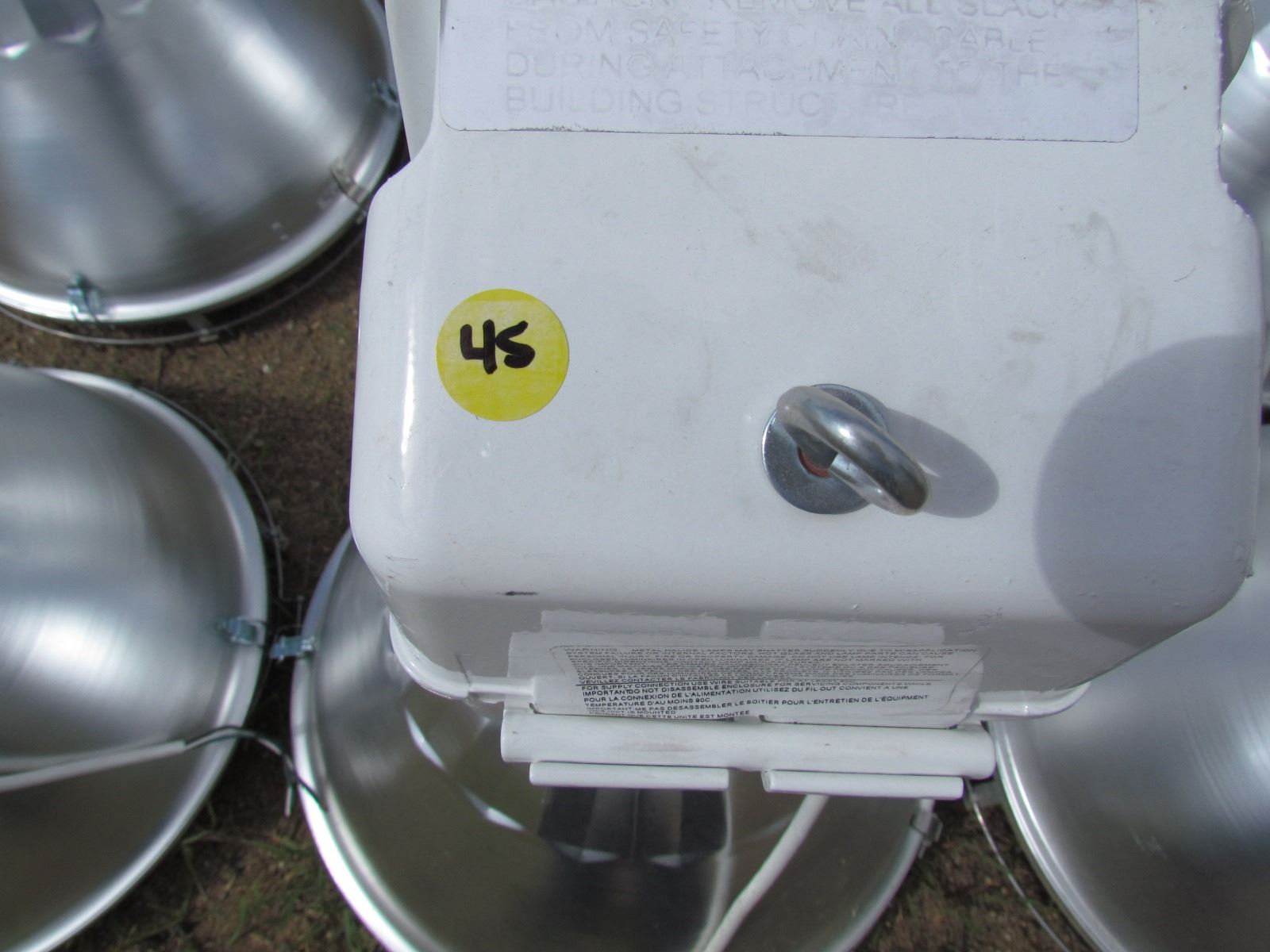 Cooper Lighting Hanging Lights from Alfred Jenkins Soccer Center, groups of 6, 3ft x 2 ft diam