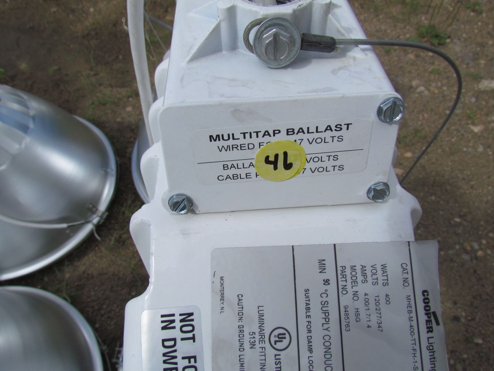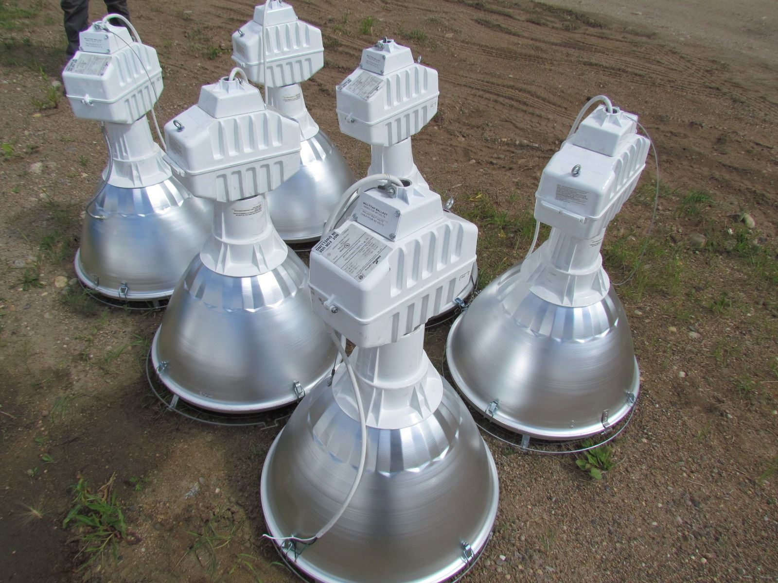 Cooper Lighting Hanging Lights from Alfred Jenkins Soccer Center, groups of 6, 3ft x 2 ft diam