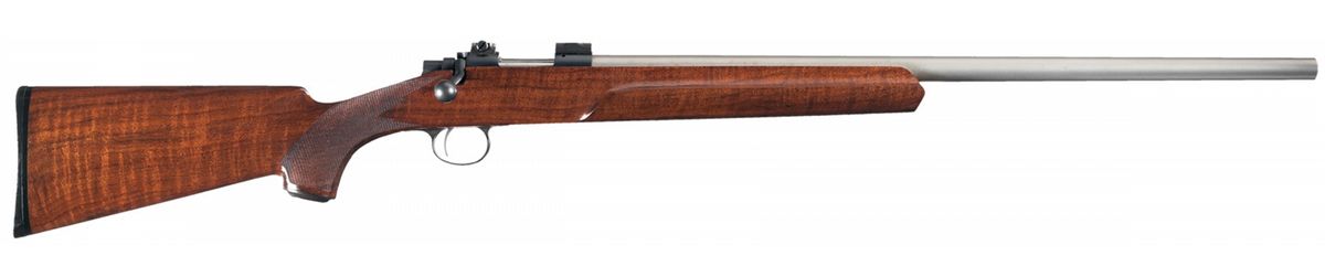 Manufactured without sights, there are quick detachable scope rings mounted to the top of the receiver. The serial number is hand stamped "WW MANN/34". The bolt is electropenciled "WW/34" on the underside of the bolt handle at the base. Mounted on a nicely figured pistol grip stock with wide forearm, checkered pistol grip area, steel grip cap and Pachmayr recoil pad. With shipping box having a label stating "AAA+" walnut and "Jewel Trigger". Consignor's notes indicate this is one of the first Coopers manufactured.
