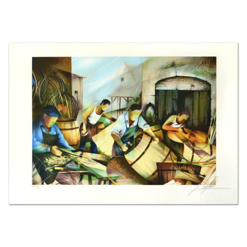 "Cooper" is a limited edition lithograph on paper by Raymond Poulet, numbered and hand signed by the artist! Measures approx. 29.5" x 21" (border). 23.5" x 18" (image).