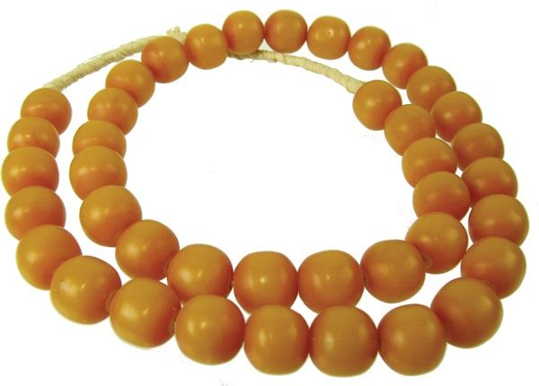 Mid/Late 1900s 39" Beautiful, extra-long strand of 20mm (3/4" x 3/4") African copal amber trade beads, one of the types of beads commonly piled around African women's necks as a sign of wealth and stature. Excellent condition.