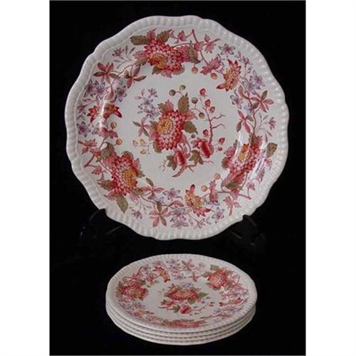 Copeland Spode dessert plate set comprised of a large plate (can be used as a cake or dessert serving plate) and four individual matching plates in the "Spode's Aster" pattern. In very good used condition as shown. Please ask questions, request additional photos and shipping costs before buying.