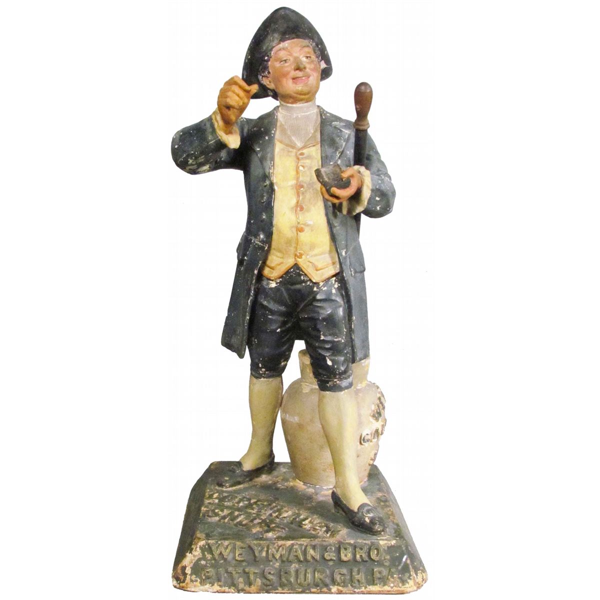 Copenhagen Snuff Chalk ware Store Display with Sample Tin. Paint loss throughout and a few light cracks otherwise good condition. 8 X 19 X 8 inches.