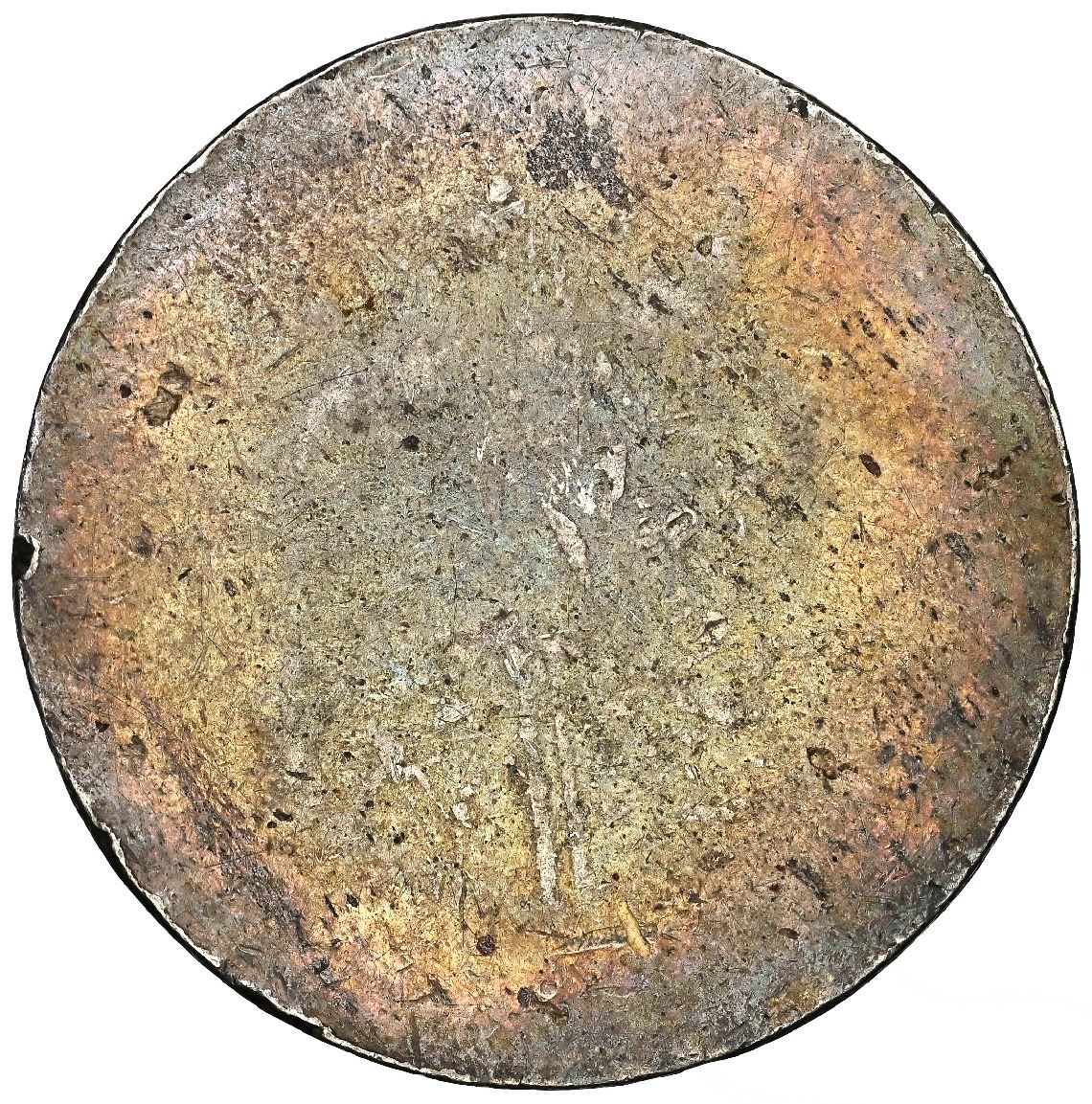 Copiapo, Chile, uniface 50 centavos, (1859), star in relief inside wide shield, NGC AU 53. KM-1.2. Bold stamps with traces of toned-over luster outside the design, the varieties noted on label, struck during occupation of Copiapo in 1859 by Chilean revolutionary Pedro Leon Gallo Goyenechea. Pedigreed to the Coleccion Val y Mexia (stated on special label). Please use this link to verify the certification number