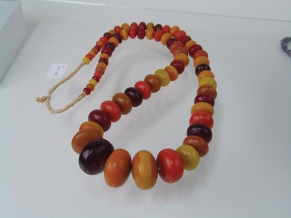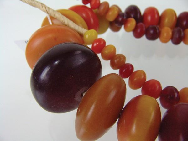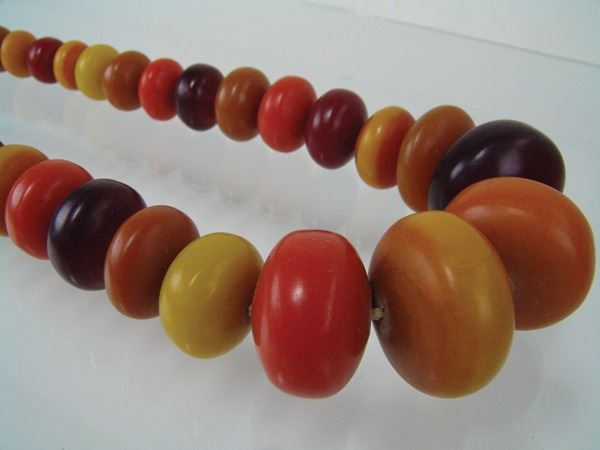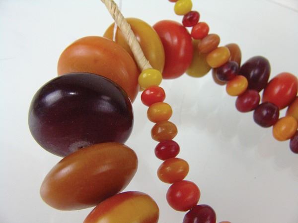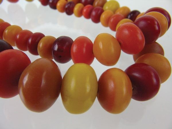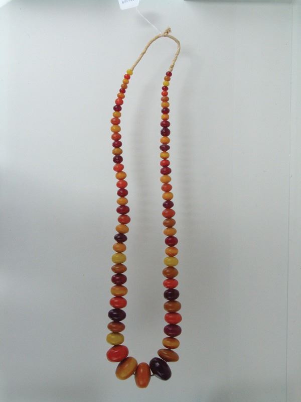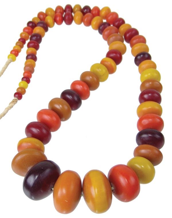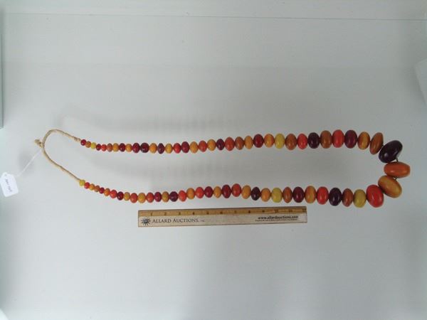 Mid/Late 1900s 52" Exceptional, extra-long strand of the rarest multi-color, graduated beads ranging in size from 2" x 1-3/8" to 5/8" x 3/8". These are the ones traditionally piled on by African