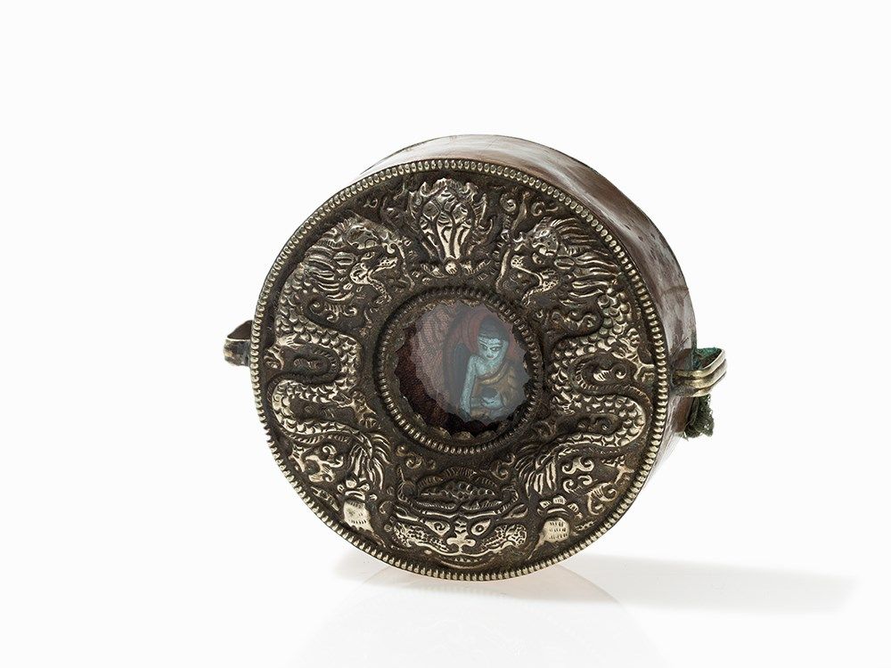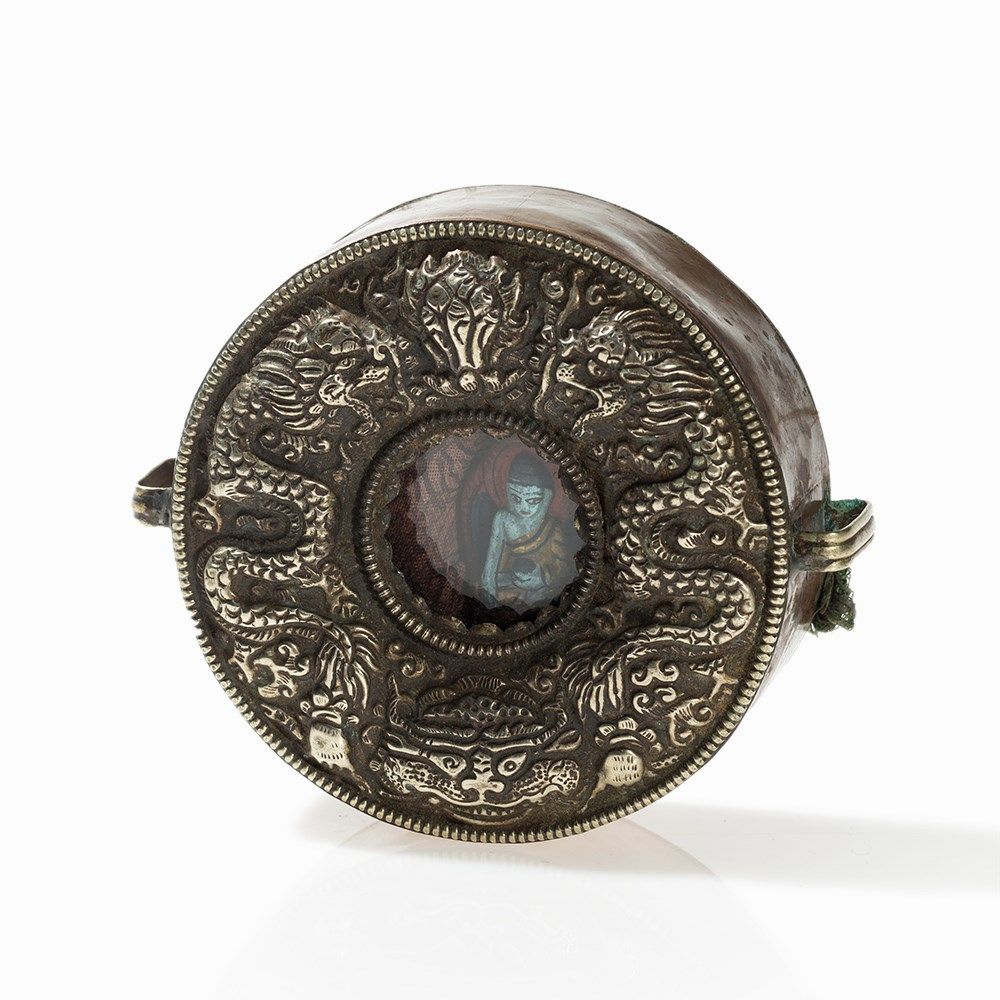 Copper Amulet Box ‘Gau’ with Tsa-tsa Buddha, Tibet, c. 1900