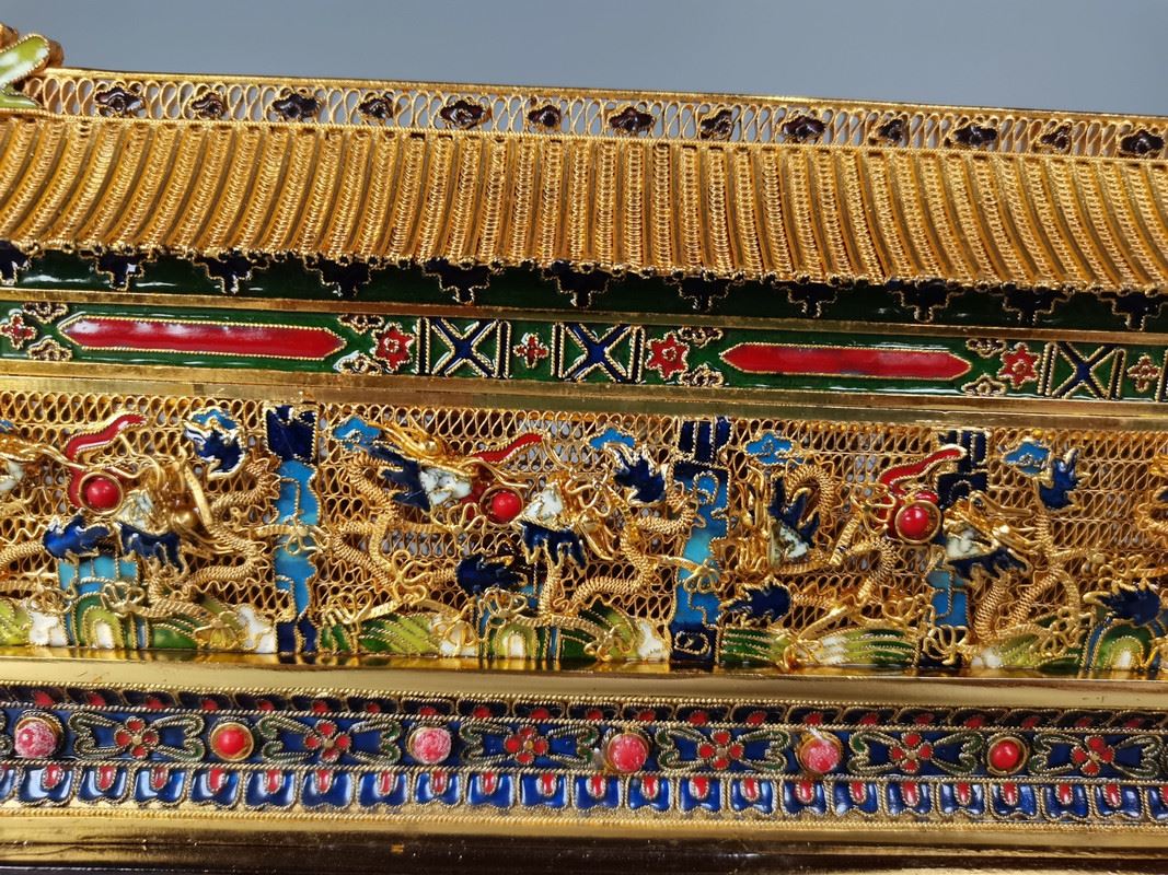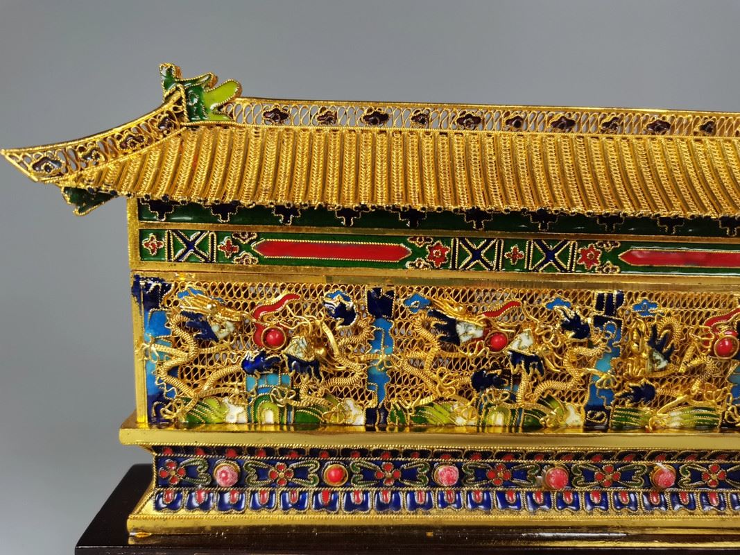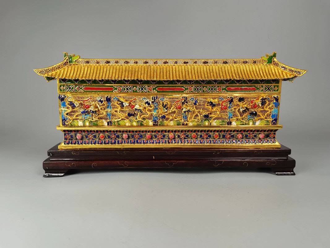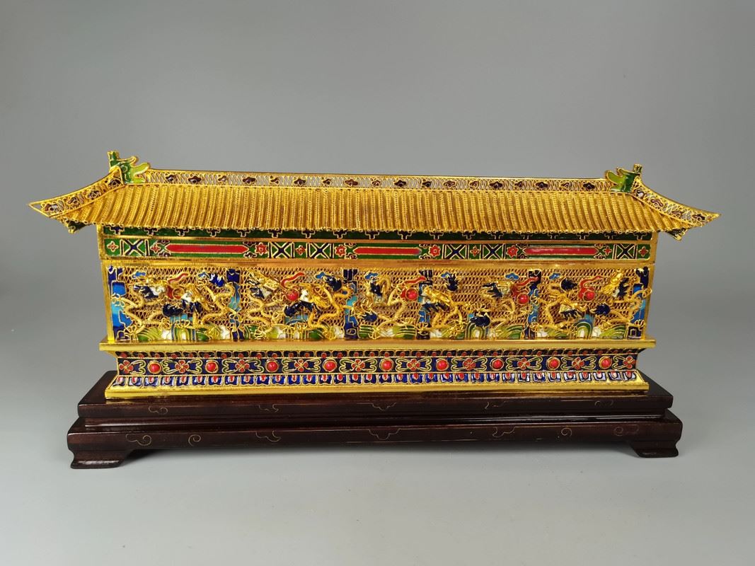 This 1980s copper base cloisonné enamel floral wire nine dragons wall showcases a perfect blend of intricate dragon motifs and traditional craftsmanship. Nine vivid dragons adorn the wall, each unique, symbolizing power and prosperity. The vibrant enamel decoration and the exquisite floral wire technique create an artwork filled with artistic flair and historical significance.