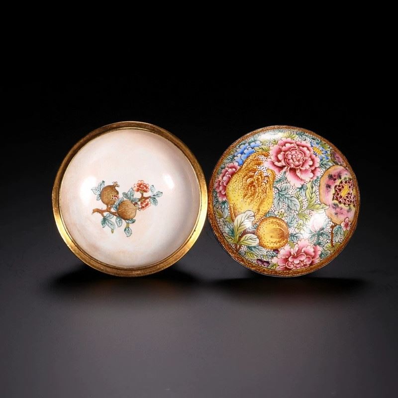 This incense holder is crafted from copper with painted enamel decoration, featuring vibrant floral and fruit motifs symbolizing abundance and good fortune. The exquisite form and fine craftsmanship combine practicality with artistic value.