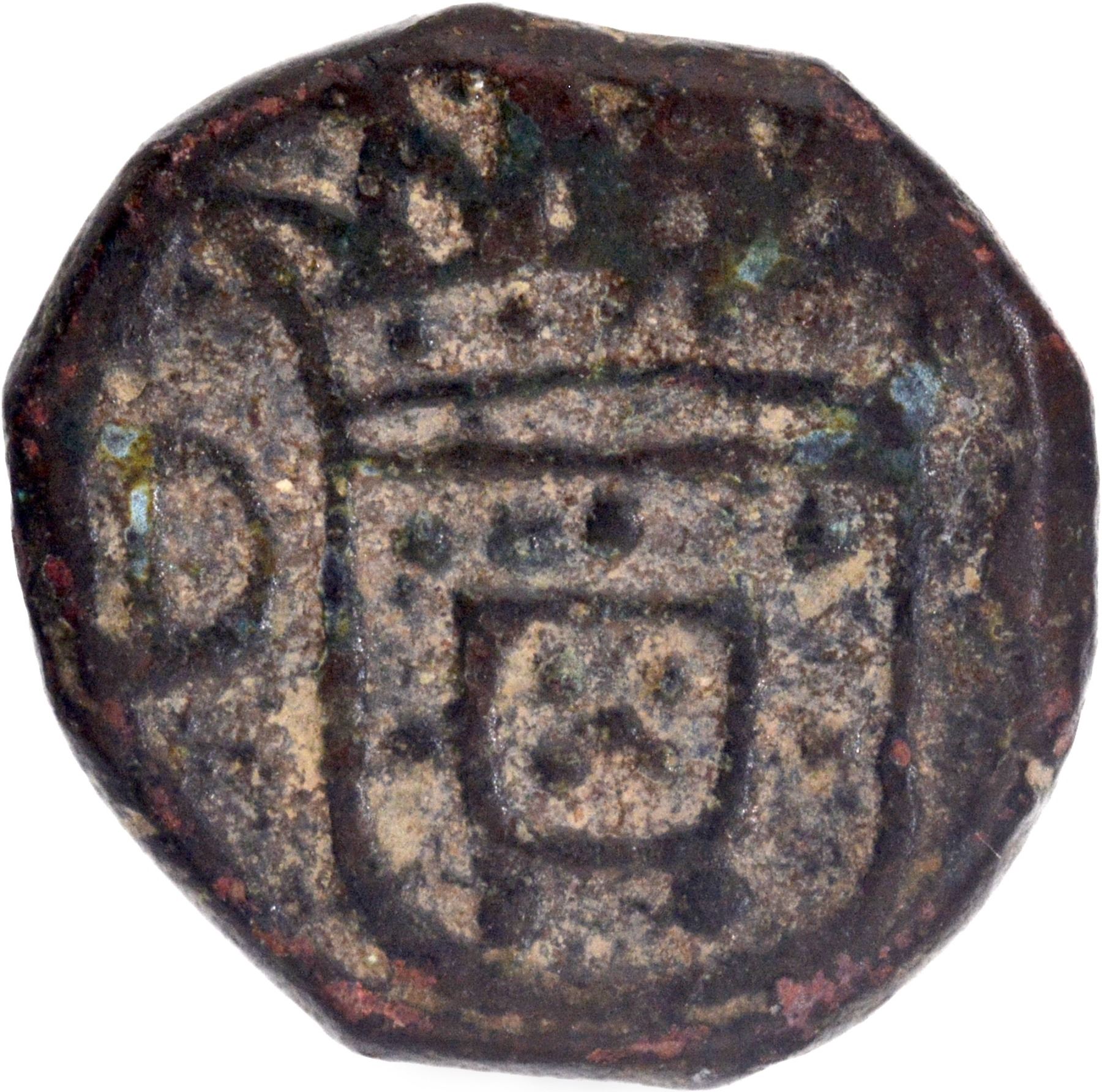 Copper Bazaruco 1680 AD (Inverted date) Coin Pedro II of Diu of Indo-Portuguese.