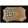 The Bell Trading Posts were favorite tourist rest stops along Route 66 in New Mexico from 1935-1972. In those days Bell Trading Post offered travelers not only a respite from their travels, but an opportunity to buy unique souvenirs made by local Navajo Native American artisans. They offered a collection of copper and turquoise pieces that were turned out by the same workers at the same time, the Corinthian line was unique. No two pieces were ever the same. Local copper mines were plentiful and turquoise was found in copper mines. While some turquoise is beautifully shaped and colored with a lovely matrix, some is nearly colorless and fragile and small. But with a little ingenuity and creativity it was this turquoise that became the focal point of the Corinthian line. The buckle is 4" X 2 3/4" and has the "Solid Copper" Bell stamp.