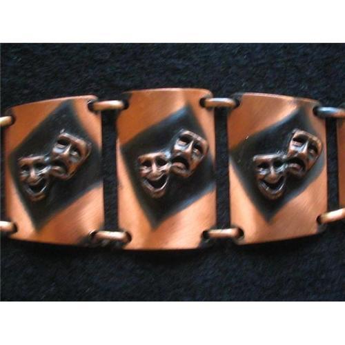 The Twin Masks of Humour & Tragedy - Stunning All Copper Bracelet</em></td>