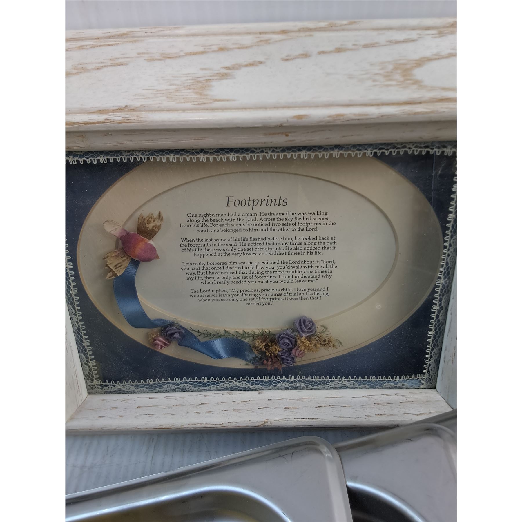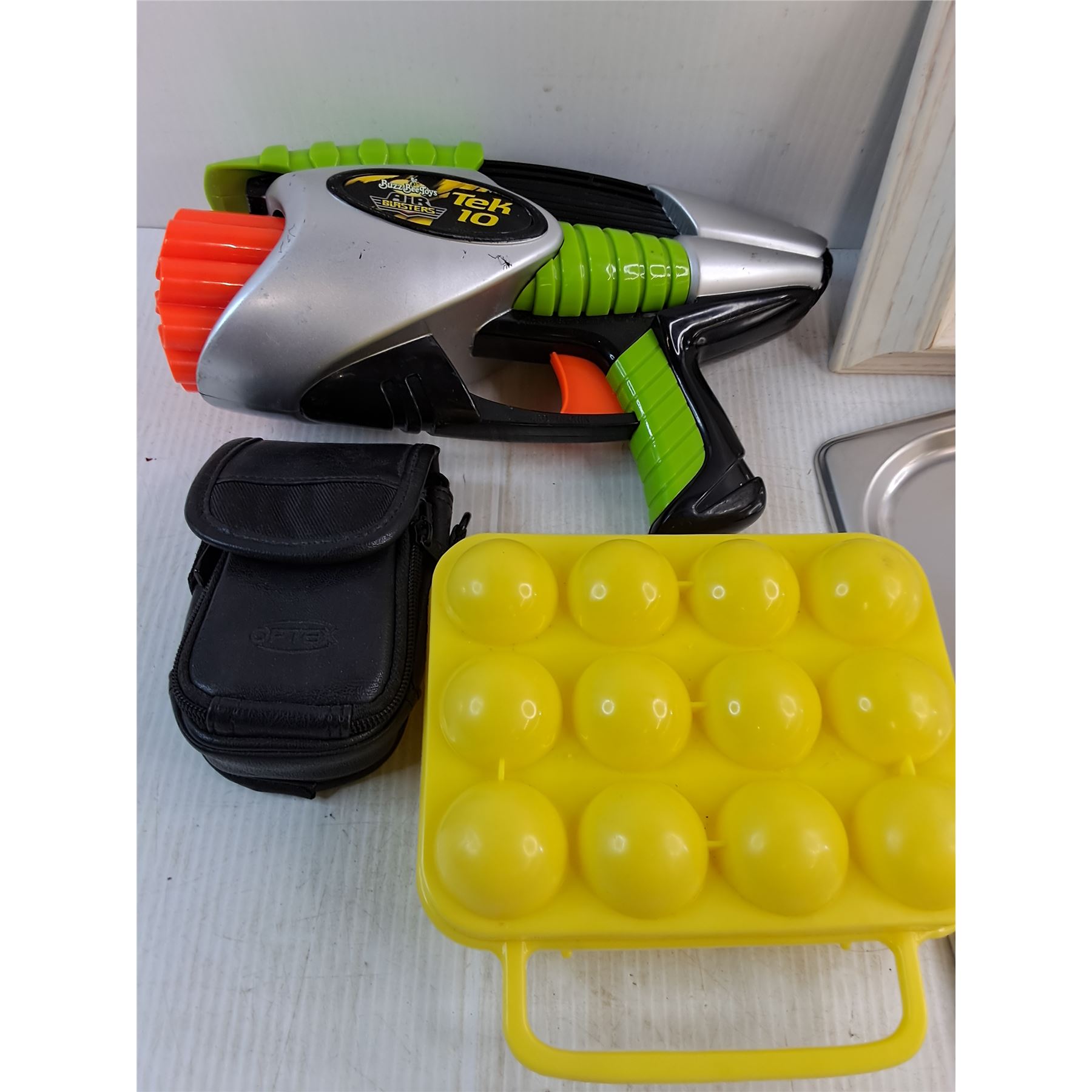 Copper Brownie Bake Pan, Tray Lids, Toy Air Gun, "Footprints" Framed Decor, Camera Case, Misc.