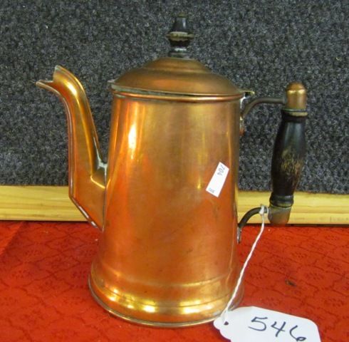 Copper Coffee Pot with Wooden Handle - from Rochester Metal Works, NY - 8" tall