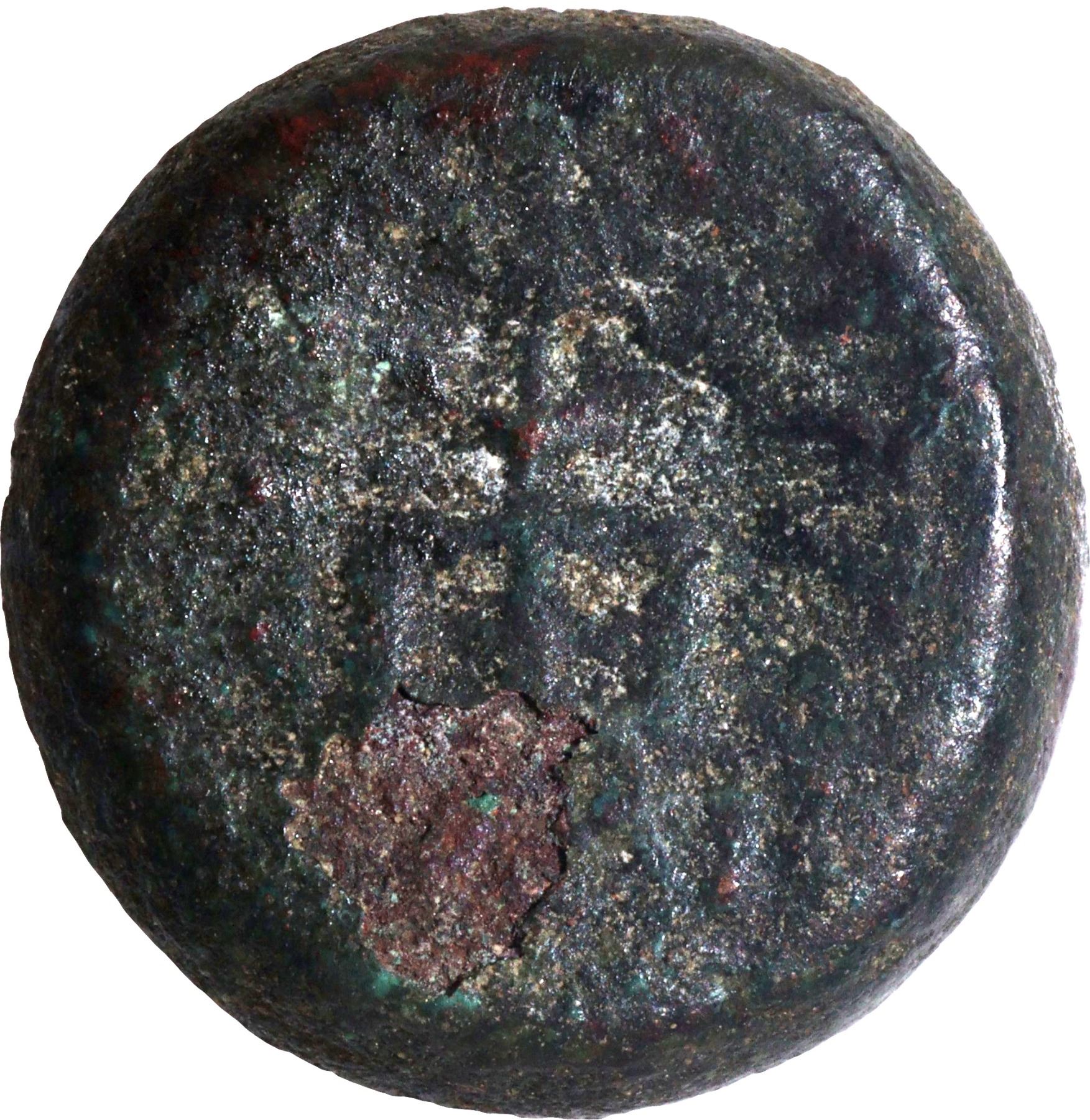 Post-Mauryan, Tribal, Agrodaka (Agacha)/Agroha Janapada (150-100 BC), Copper Unit, Chaitya type, Obv: a railed tree in the center, traces of Brahmi legend around, Rev: a three-arched hill (chaitya) surmounted by a Nandipada symbol, 2.9g, 12.13mm, (Unlisted), about very fine.