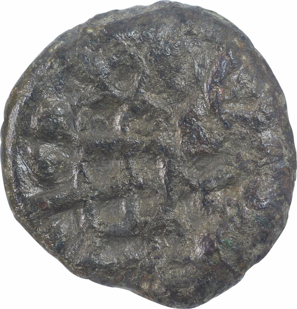 Madhyamika, City State, Copper Unit,Obv:bold brahmi legendma da vi kewithsvastika,Rev:tree railing, tiscali,madhyamikawas ancient capital of the sibijanapada,7.23g,19.33mm,about extremely fine,Rare.