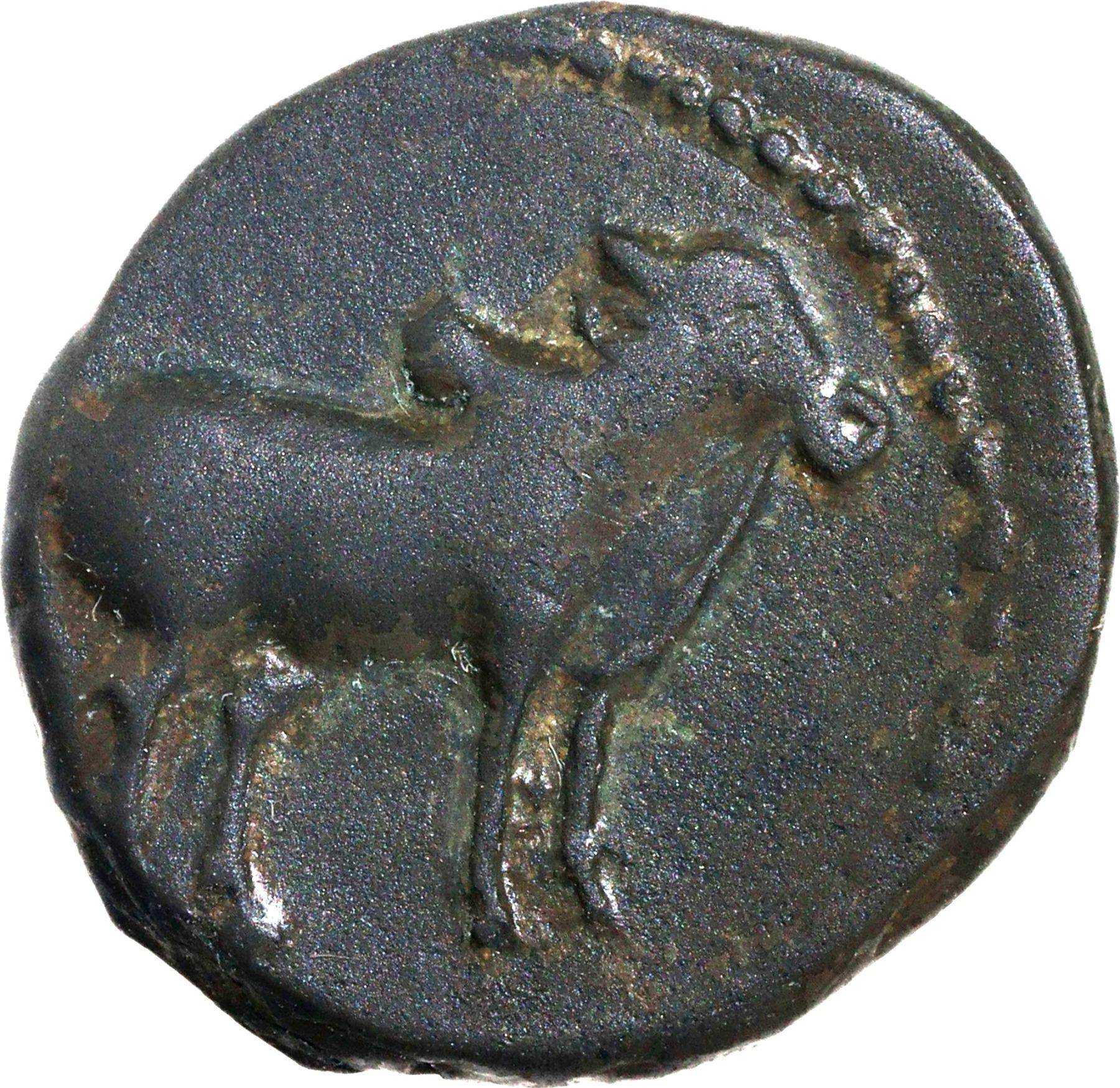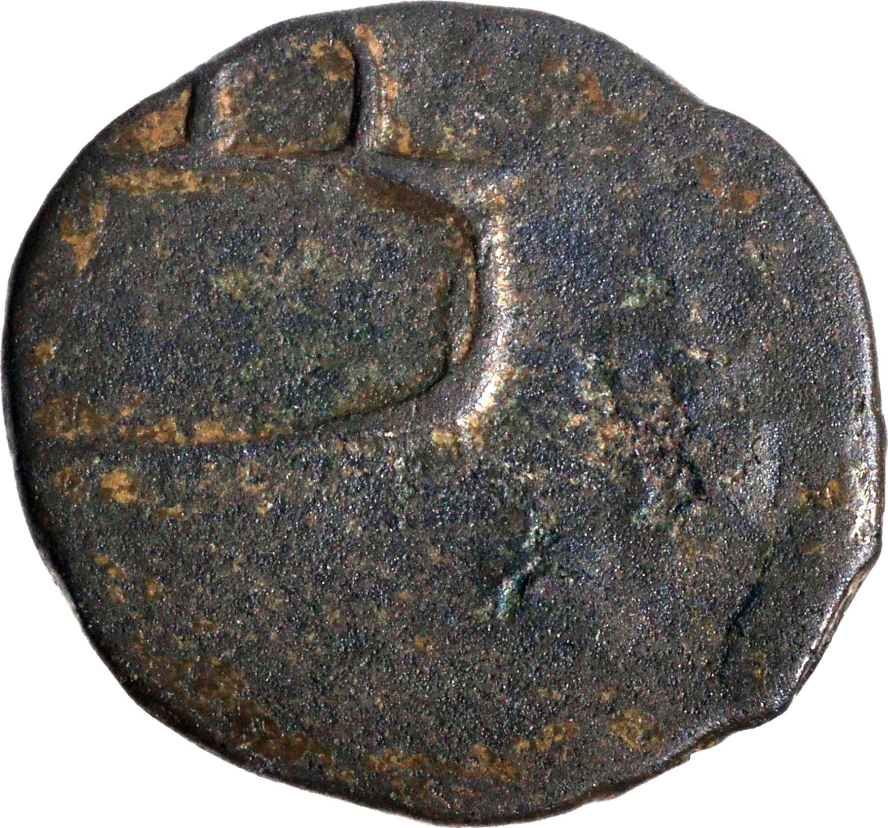 Pallavas of Kanchi (300-500 CE), Karur Region, Copper Unit, Vessel type, Obv: an upright bull facing right, a dotted border around the field, Rev: a vessel, 2.1g, 16.21mm, (The Pallava Coins, R. Krishnamurthy # 17), lovely strike, superb quality, almost uncirculated, Very Rare in this grade.