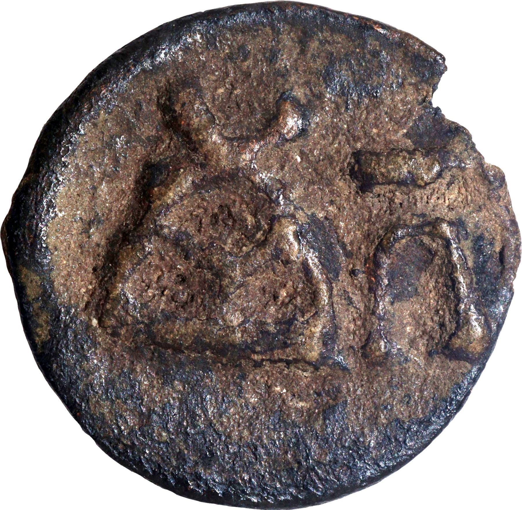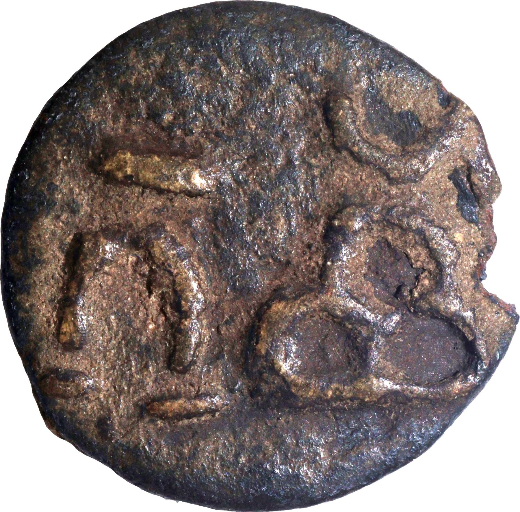 Post-Mauryan, Taxila (Punjab) – Local Coinage (185-168 BC), Copper Unit, Obv: a three-arched hill and an archway represents like Brahmi letter 'Go', Rev: same as obverse, 1.1g, 13.66mm, (Mitch. ACW # 4422/W. Pieper # 1092), about very fine, Rare.