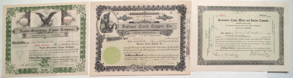Boston-Greenwater Copper Company; Furnace Creek Copper Company; Greenwater Copper Mines & Smelter Company.