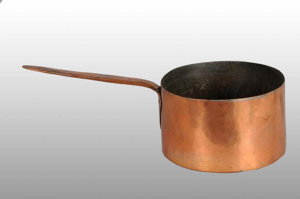 Description American. Circa 1800 to 1820. Beautiful exposed dove-tail construction on the bottom of the pot with lovely hand-forged handle and nicely polished. Condition (Excellent). Size 6" x 22".