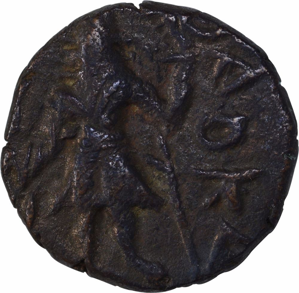 Kushan Dynasty, Kanishka I,Copper Tetra Drachma,Moon God (Mao) Type,Obv:king standing facing, holding spear and goad and sacrificing at fire altar leftwith bactrian legend around,Rev:moondeity mithra standing left, nimbate, holding sword hilt with left hand, bactrian legend at rightMAO and tamgha at left,3.76g,16.16mm,about very fine.