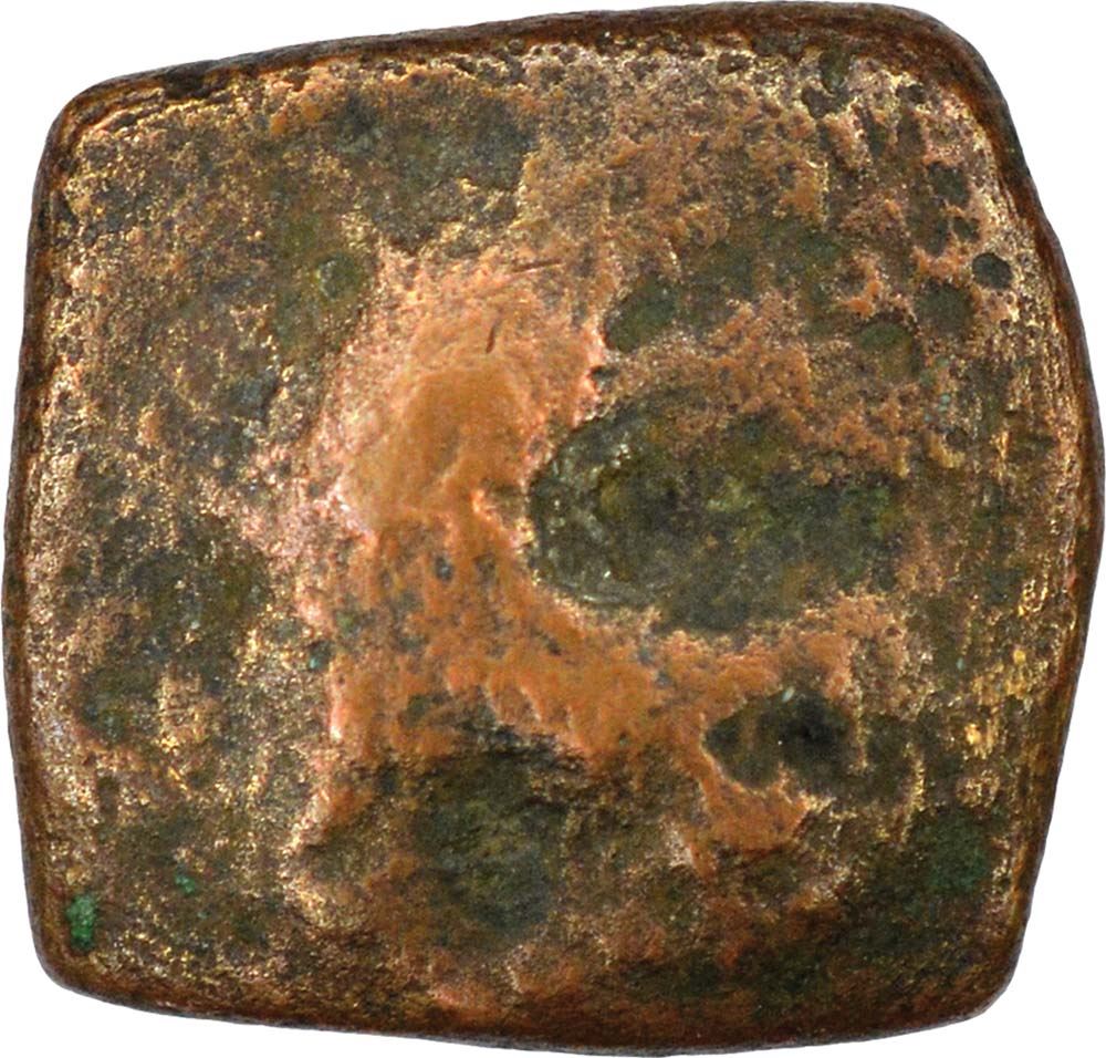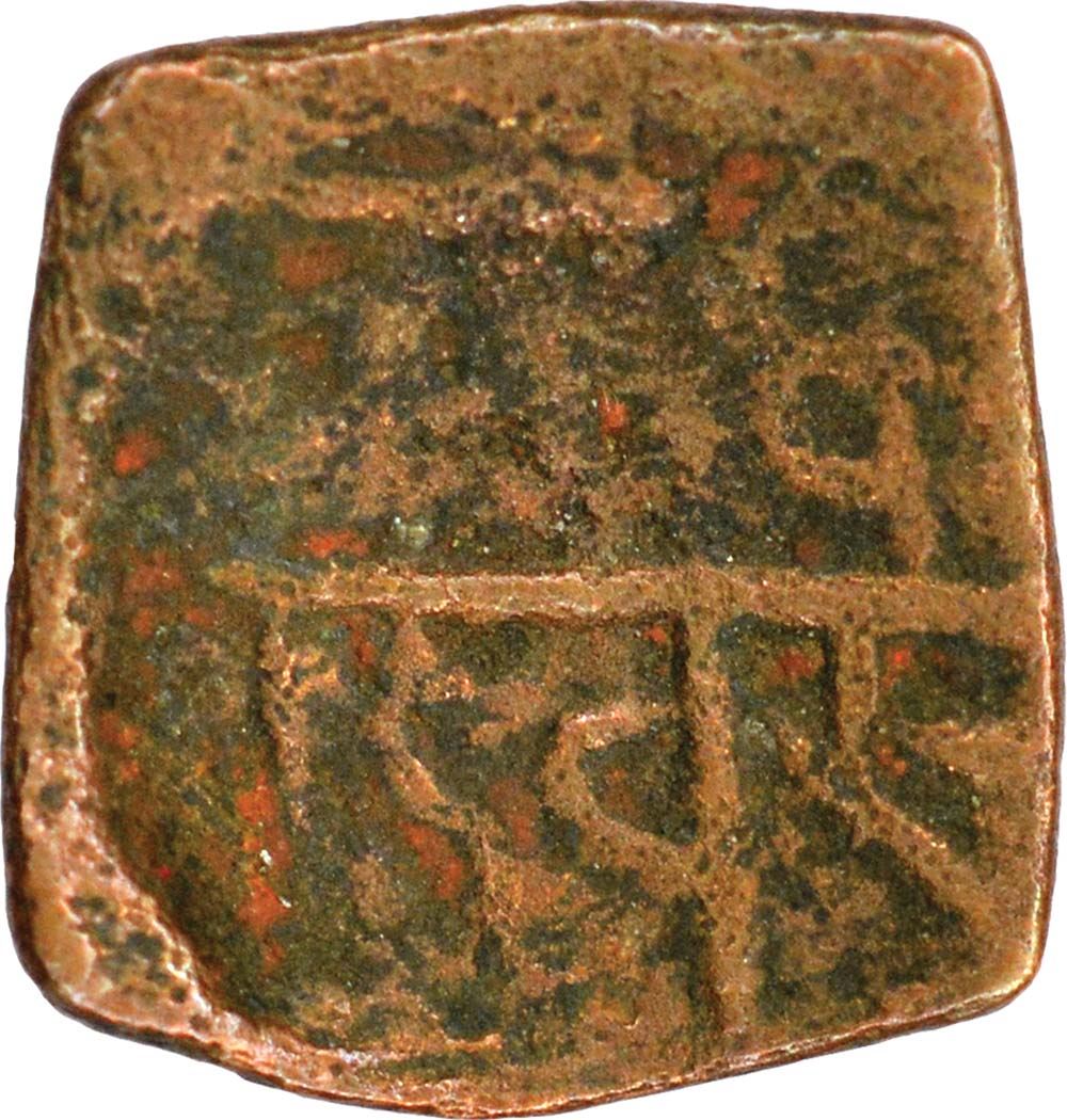 Vaghelas of Gujrat, Karandev II (VS1353-1360 / 1296-1304 AD), Copper Dramma, Obv: elephant facing to left,Rev:nagari legend in two lines in a square “sri ka (rana) deva", 2.20g, 15.64 x 14.99mm,about fine, Rare.