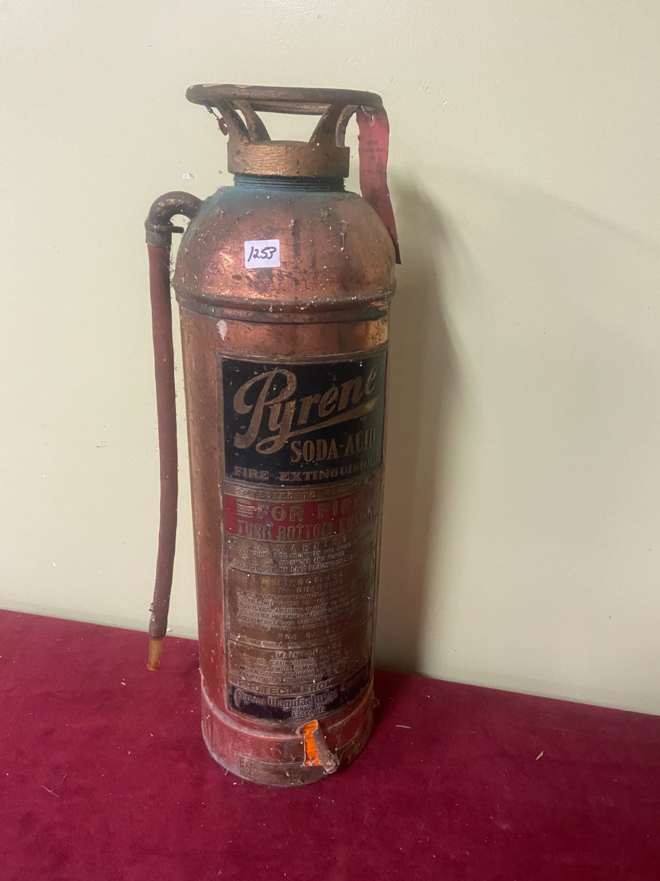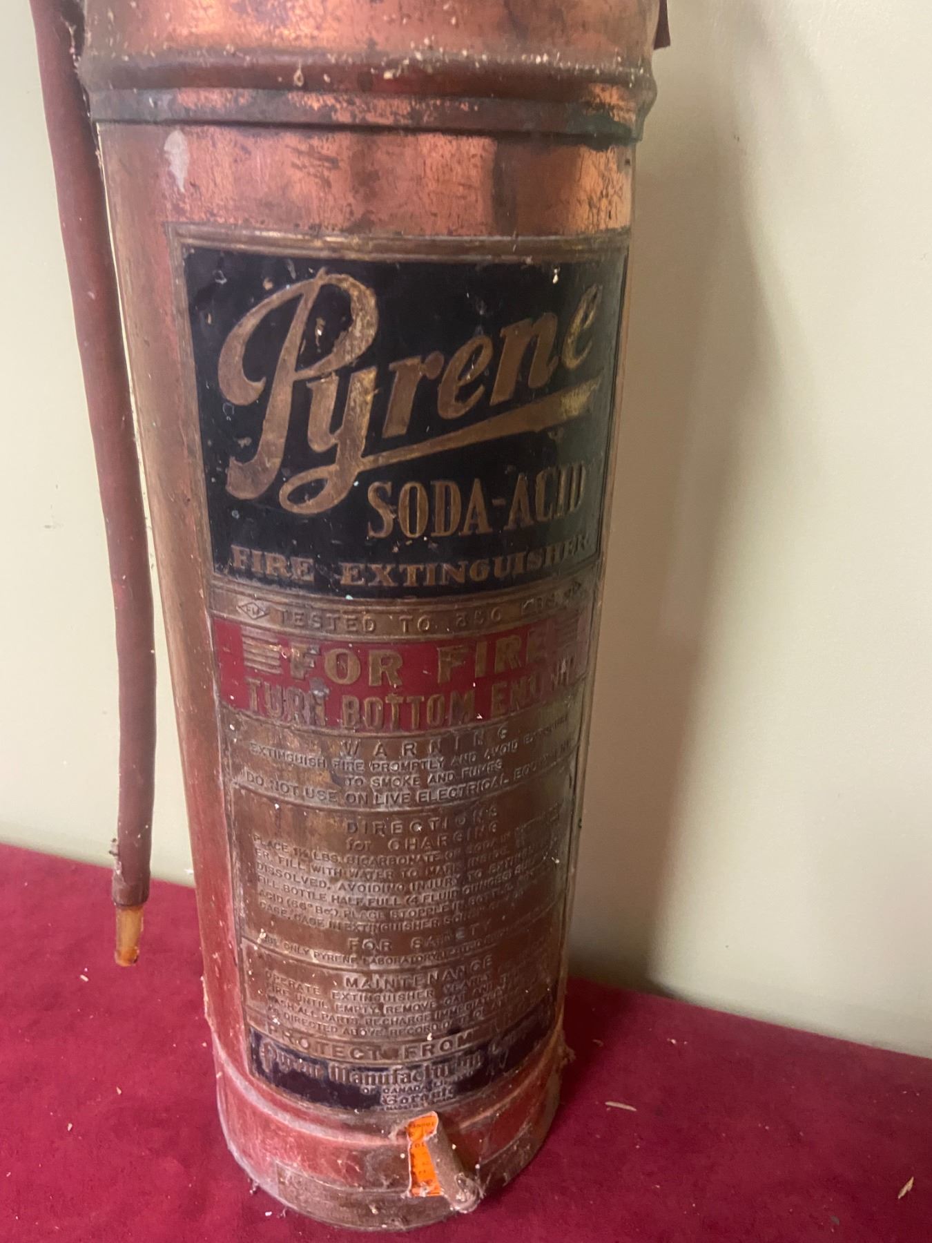 Copper Fire Extinguisher Pyrene- Soda Acid- Weight: 14.5lb