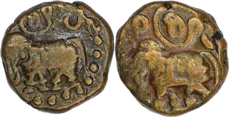 Krishna Raja Wodeyar III, Copper 5 Cash (2), Type II,Obv:caparisoned elephant to left, Rev: kannada and english legend,2.30g, 2.25g,12.45mm, 12.11mm,about very fine+.