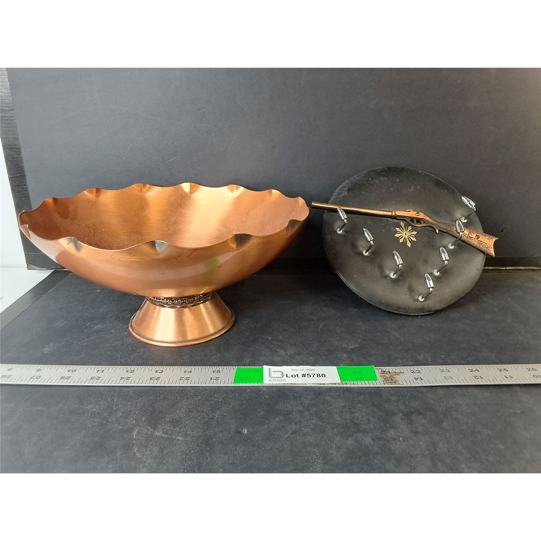 Copper Footed Bowl 10.75  Diameter & Hunting Keyholder
